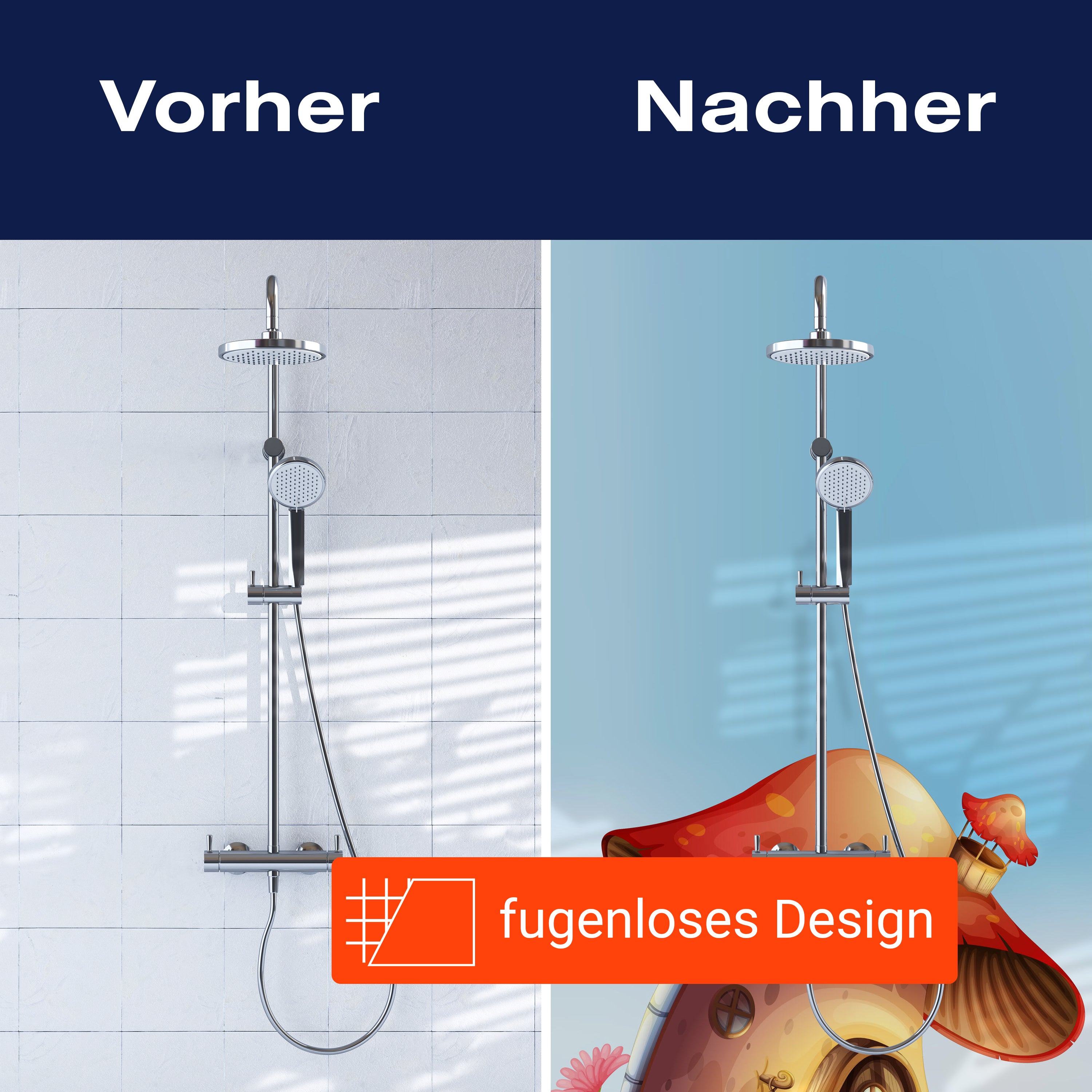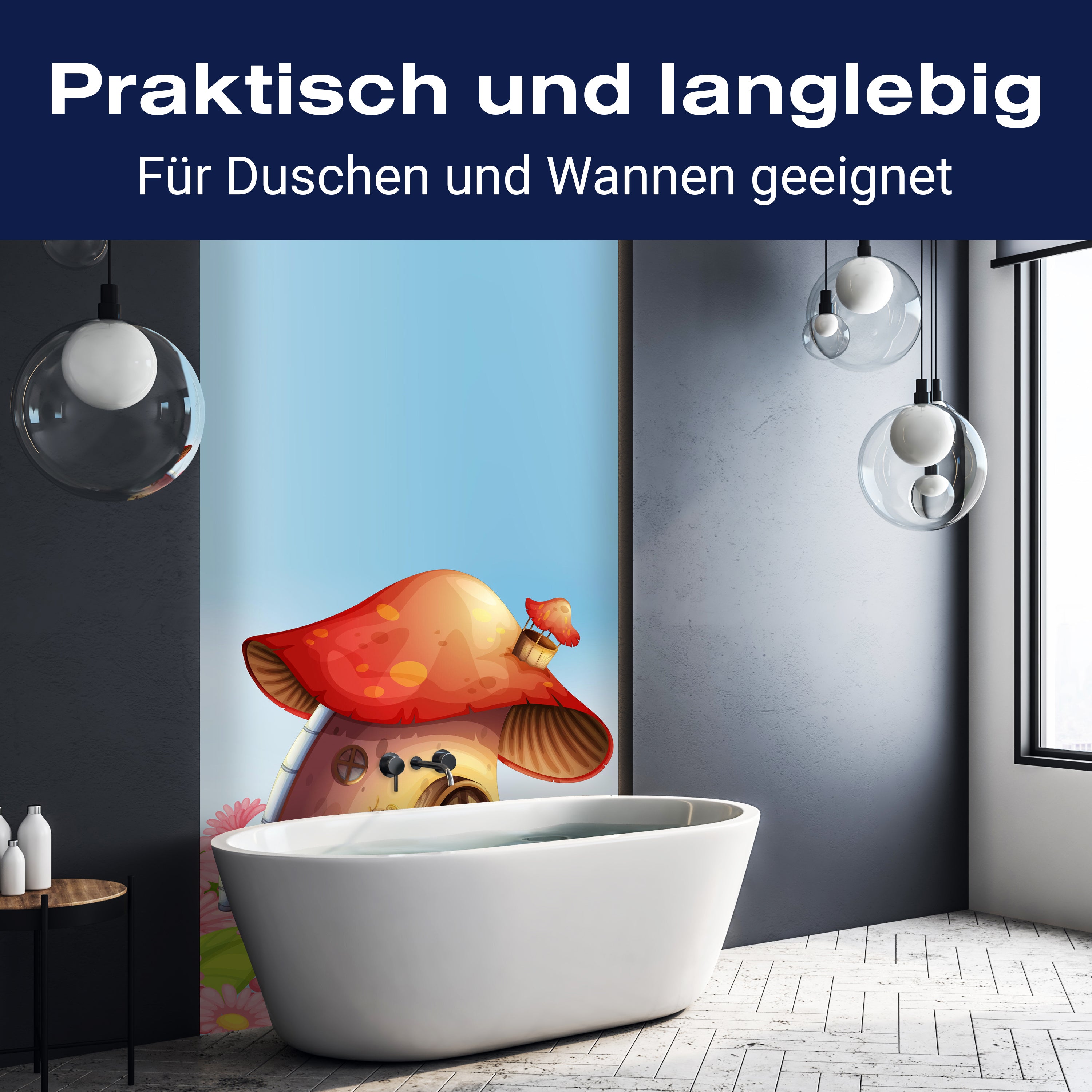 Bist du es leid, auf die langweiligen, schwer zu reinigende Fliesen in deiner Dusche zu schauen? Stell dir vor, wie dein Bad mit einer stilvollen, modernen Rückwand zum Leben erwacht! Unsere Duschwand 'Pilz auf der Blumenwiese' ist nicht nur ein optisches Highlight, sondern auch praktisch und pflegeleicht.