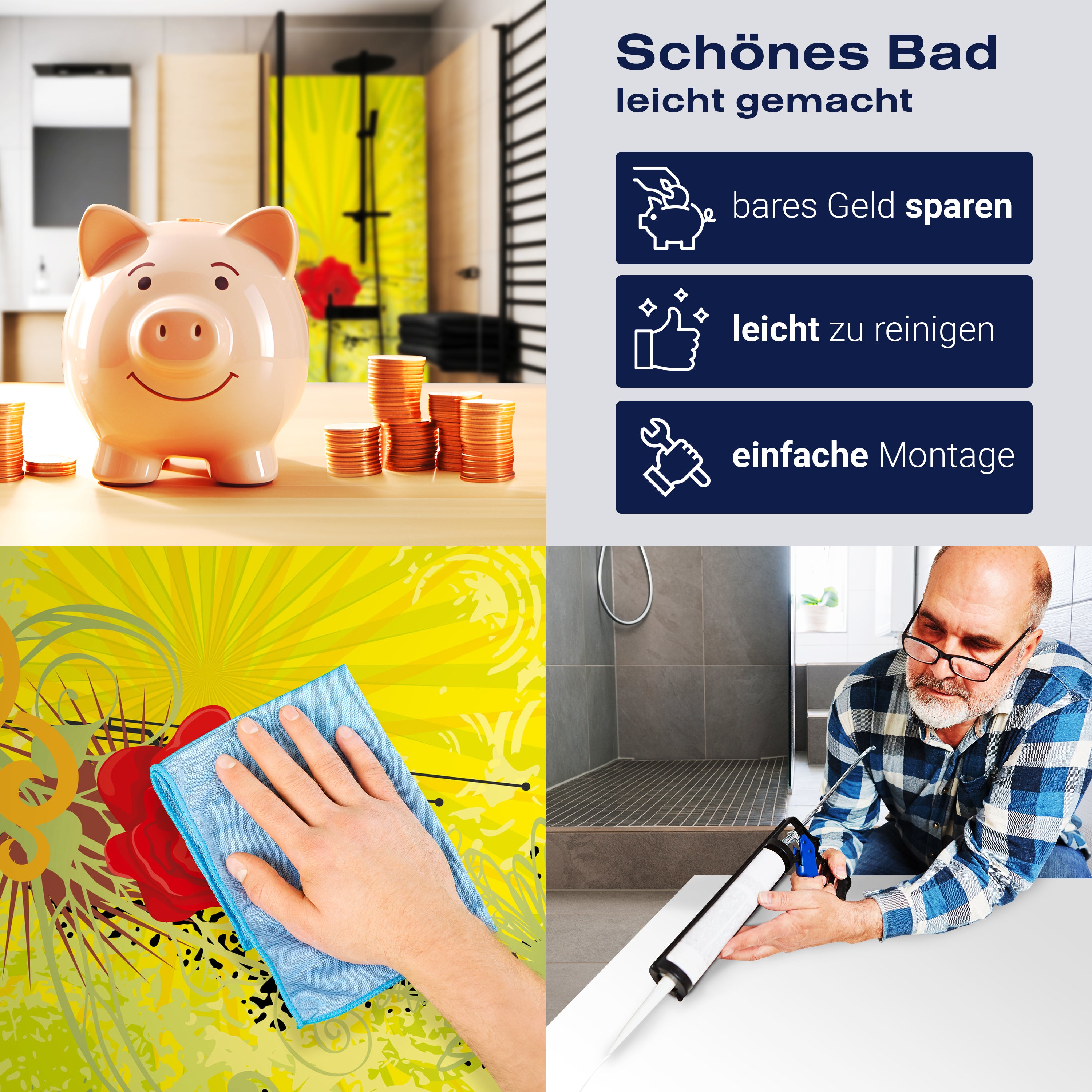 ür eine optimale Langlebigkeit ist es wichtig, die Duschrückwände richtig zu pflegen. Sie sollten regelmäßig mit einem weichen Tuch und milden Reinigungsmitteln gereinigt werden, um Kalk- und Seifenrückstände zu entfernen. Scheuermittel oder aggressive Chemikalien sollten vermieden werden, da diese die Oberfläche beschädigen können. Die fugenlose Oberfläche vereinfacht die Reinigung erheblich und trägt dazu bei, dass die Wandverkleidung hygienisch und ansprechend bleibt