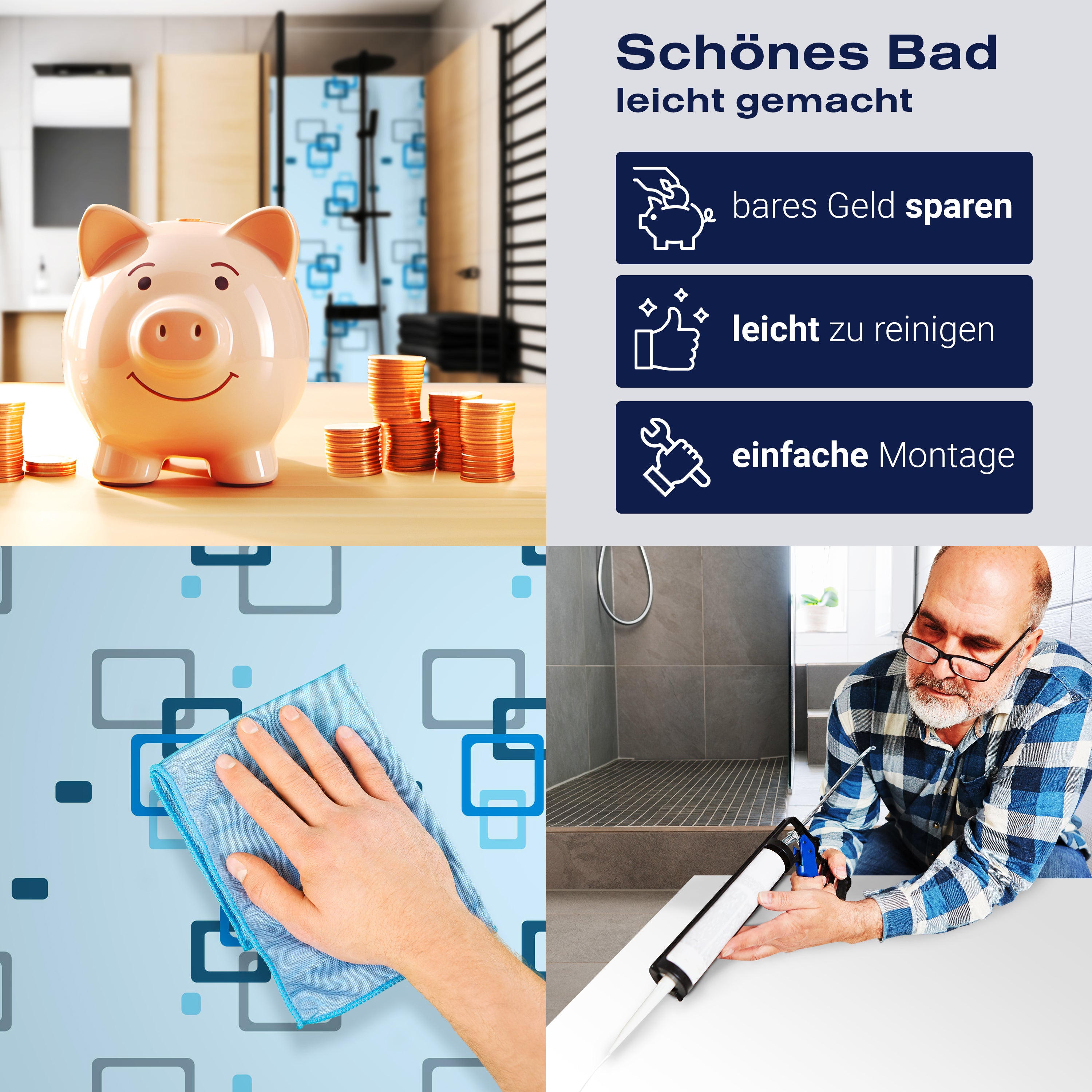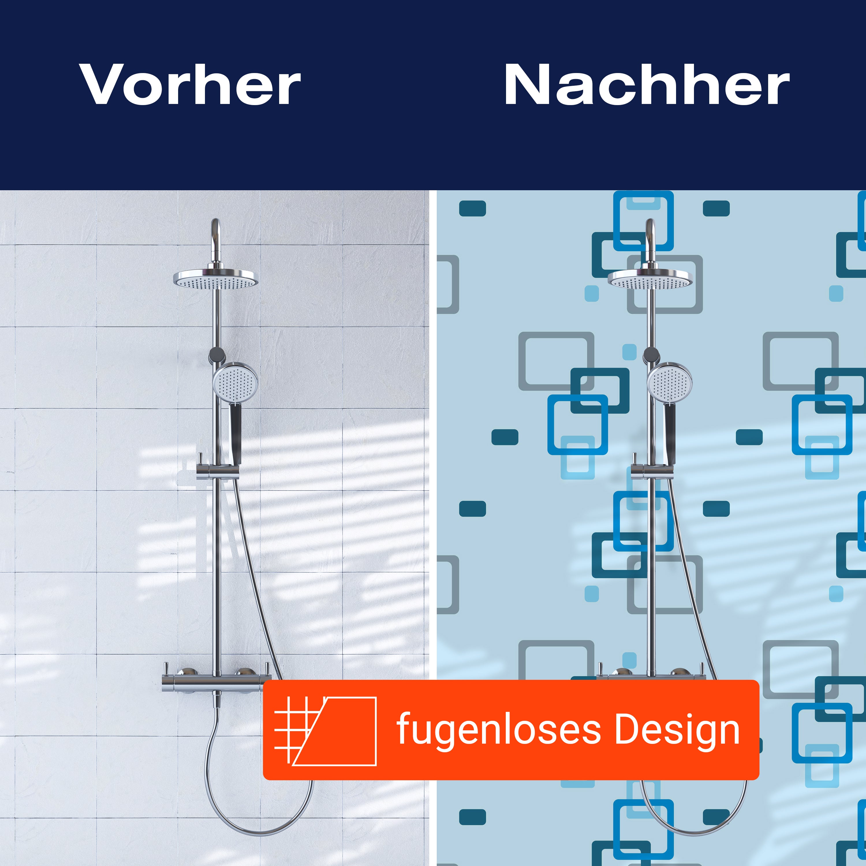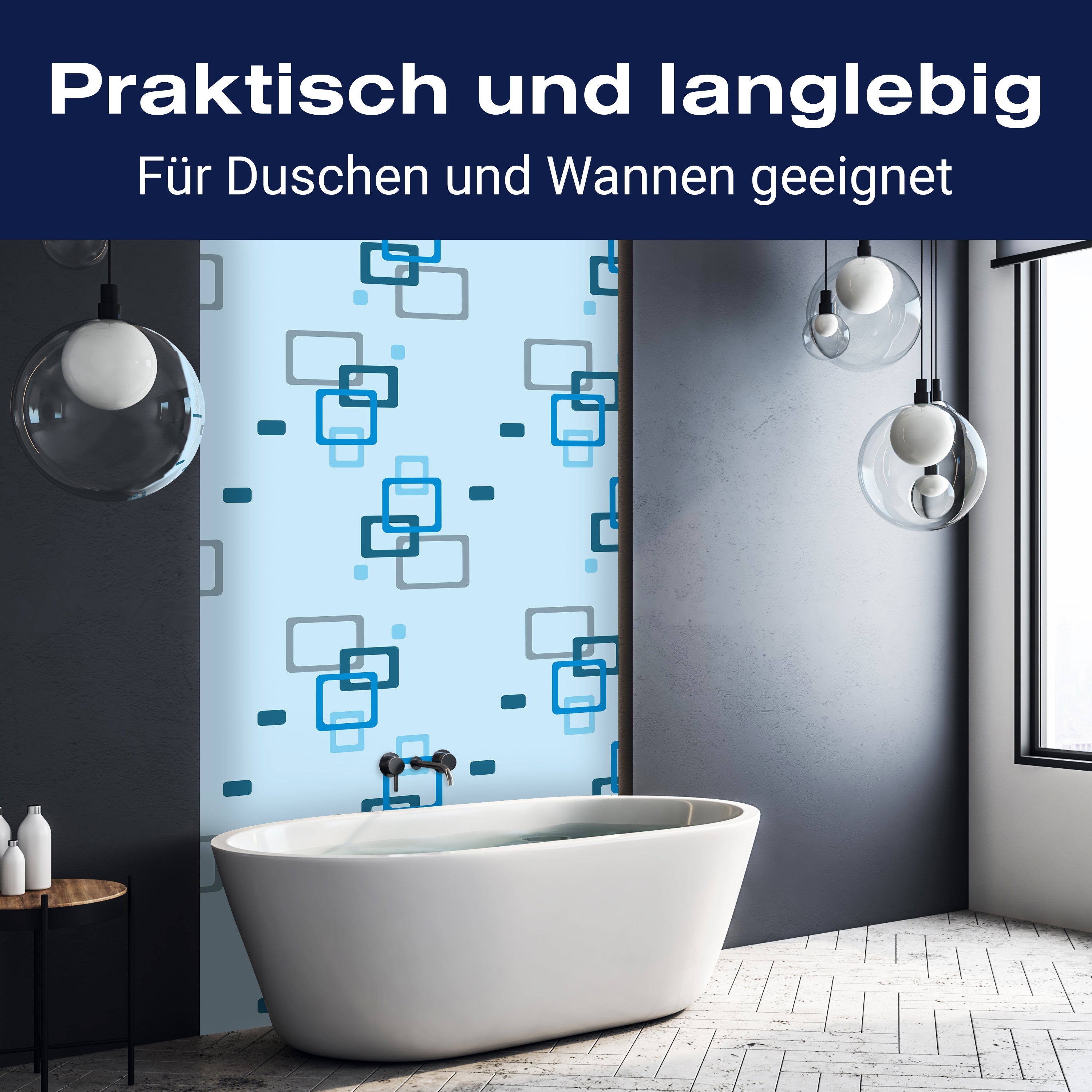 Bist du es leid, auf die langweiligen, schwer zu reinigende Fliesen in deiner Dusche zu schauen? Stell dir vor, wie dein Bad mit einer stilvollen, modernen Rückwand zum Leben erwacht! Unsere Duschwand 'Retrokästchen hellblau Muster' ist nicht nur ein optisches Highlight, sondern auch praktisch und pflegeleicht.