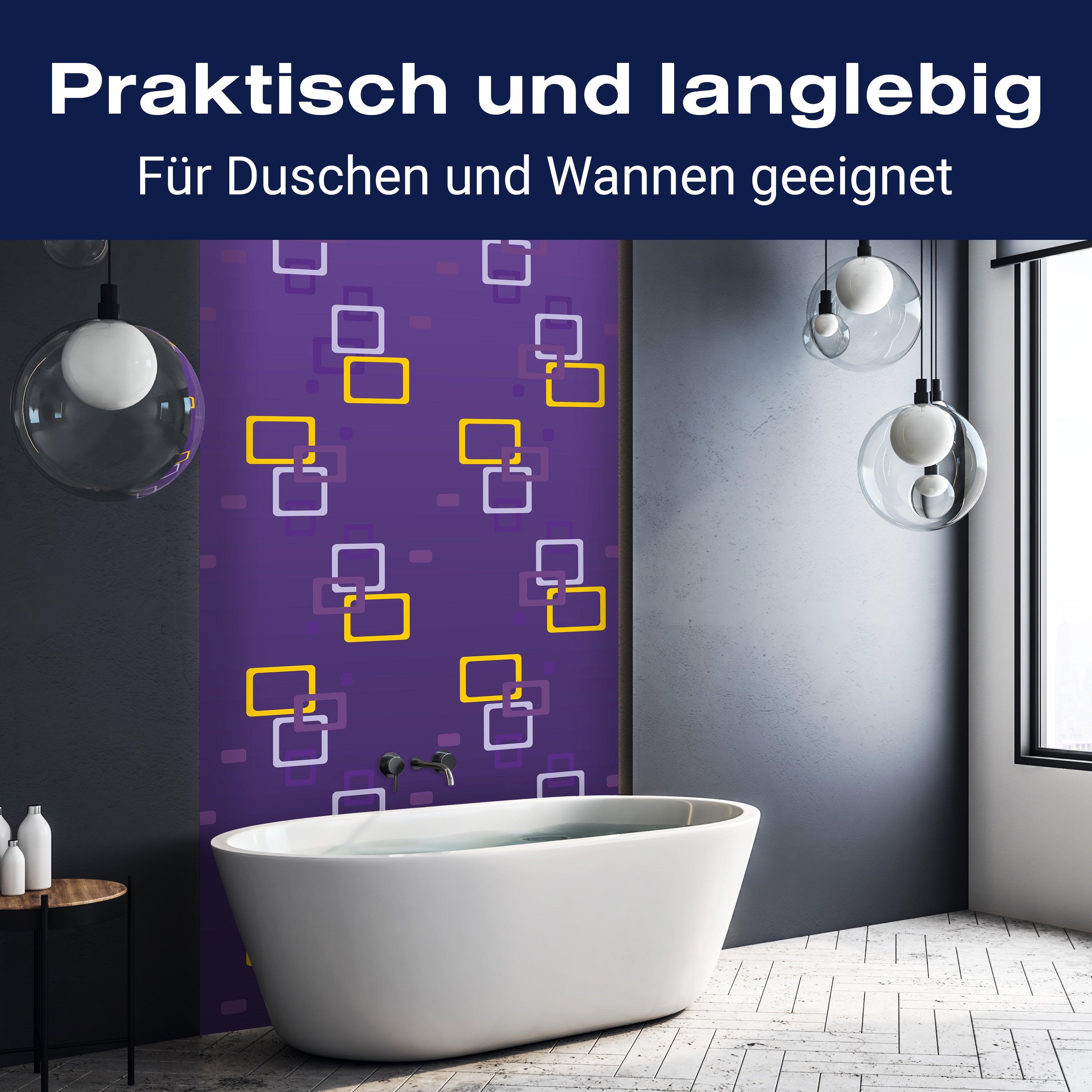 Bist du es leid, auf die langweiligen, schwer zu reinigende Fliesen in deiner Dusche zu schauen? Stell dir vor, wie dein Bad mit einer stilvollen, modernen Rückwand zum Leben erwacht! Unsere Duschwand 'Retrokästchen Lila Muster' ist nicht nur ein optisches Highlight, sondern auch praktisch und pflegeleicht.