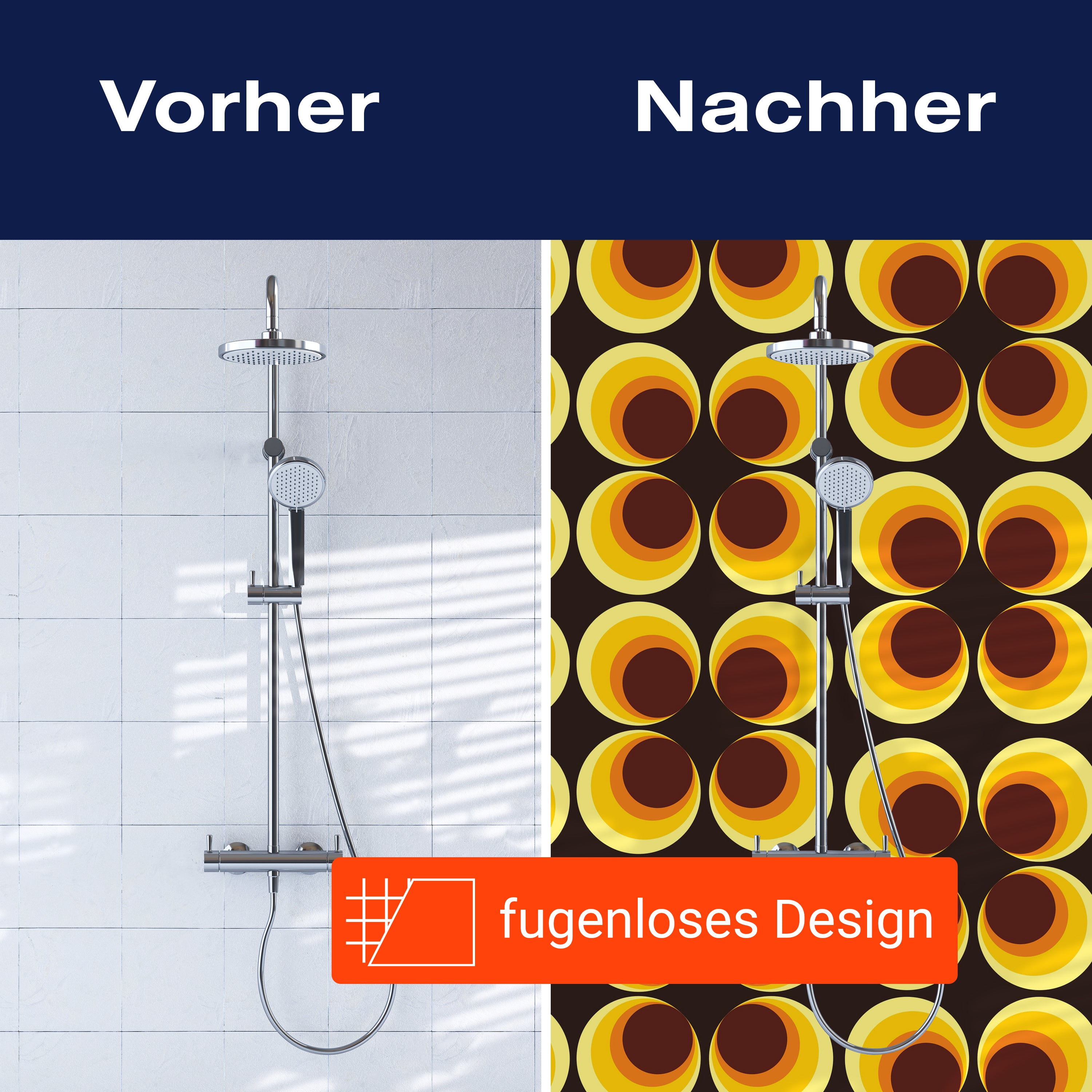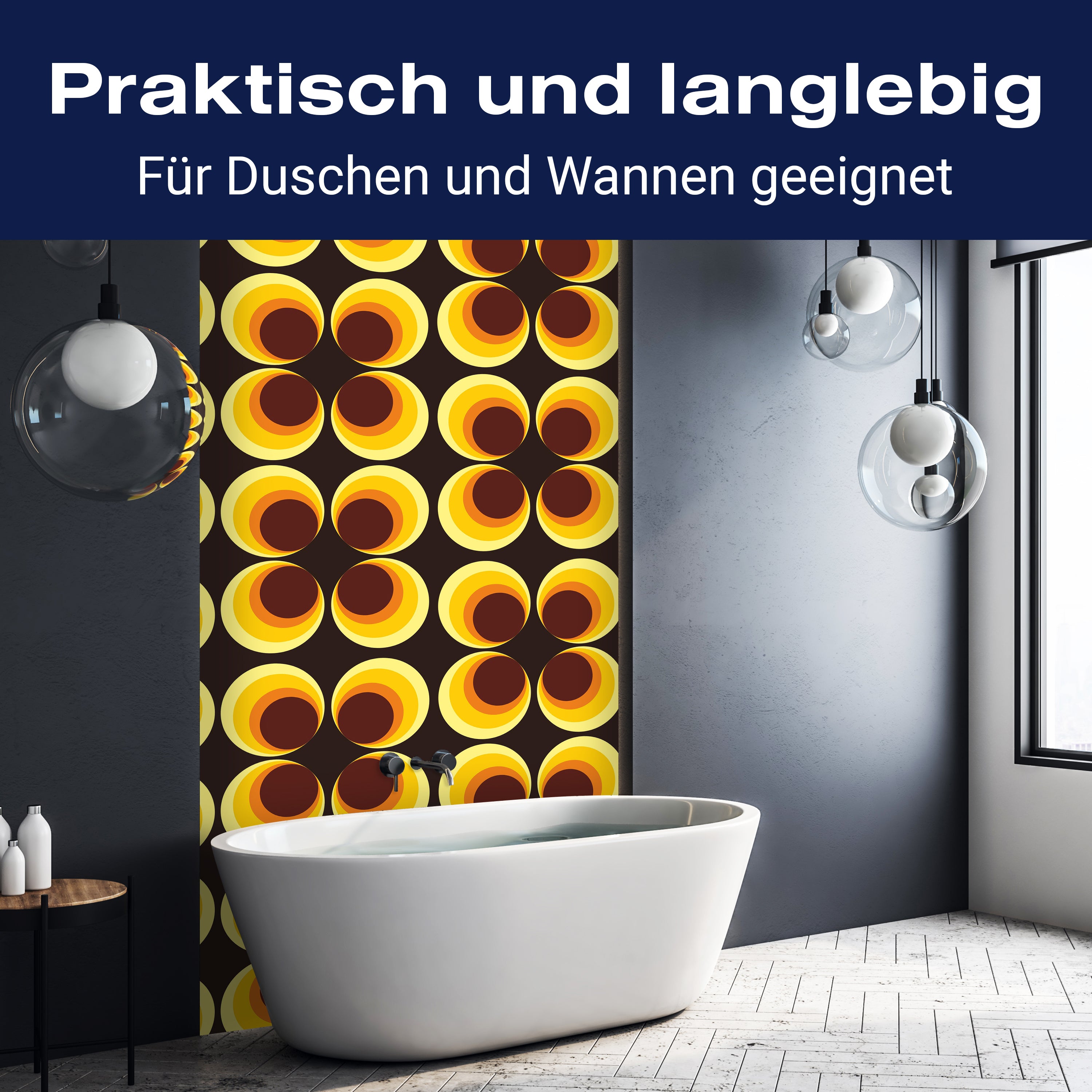 Bist du es leid, auf die langweiligen, schwer zu reinigende Fliesen in deiner Dusche zu schauen? Stell dir vor, wie dein Bad mit einer stilvollen, modernen Rückwand zum Leben erwacht! Unsere Duschwand 'Retrokreise Braun Muster' ist nicht nur ein optisches Highlight, sondern auch praktisch und pflegeleicht.