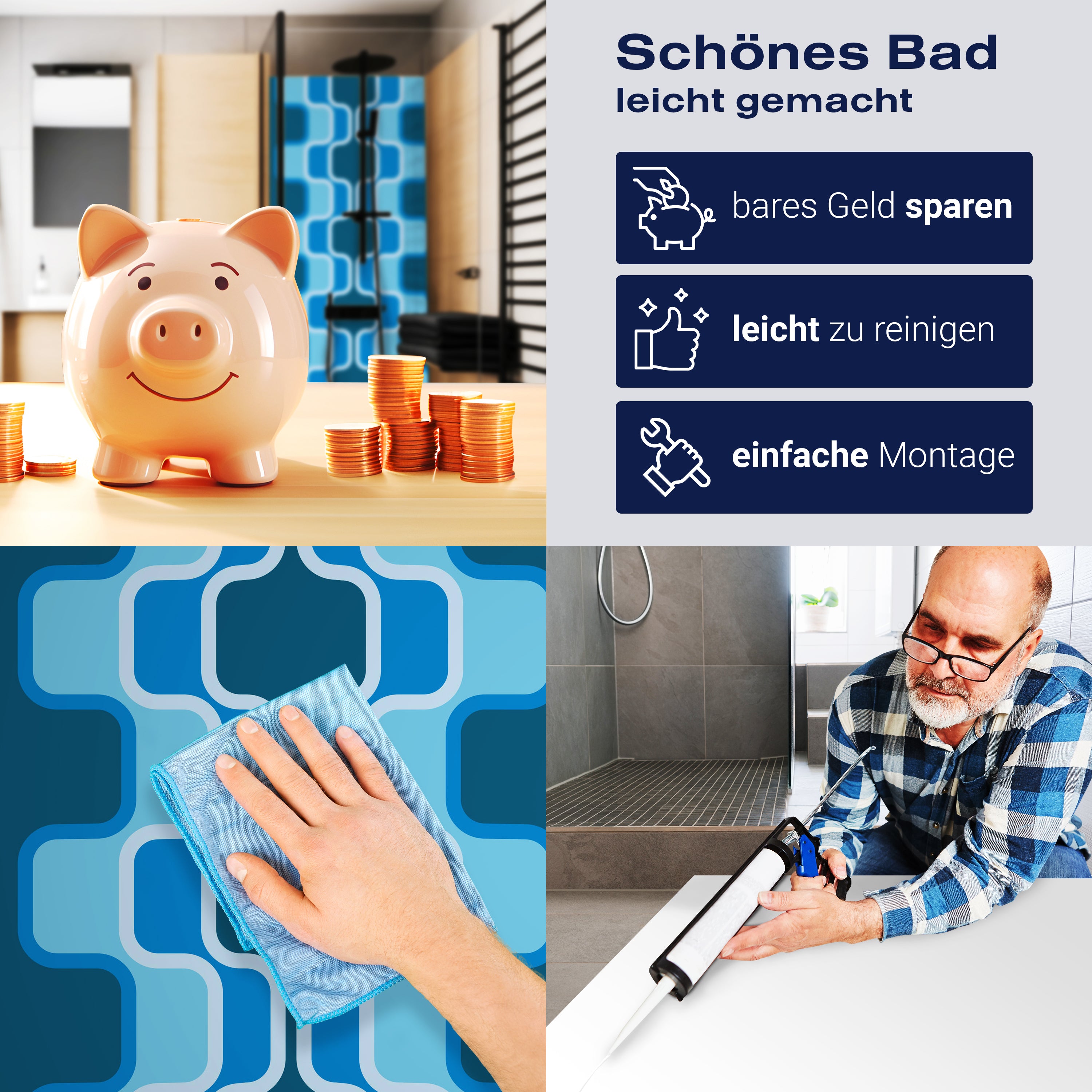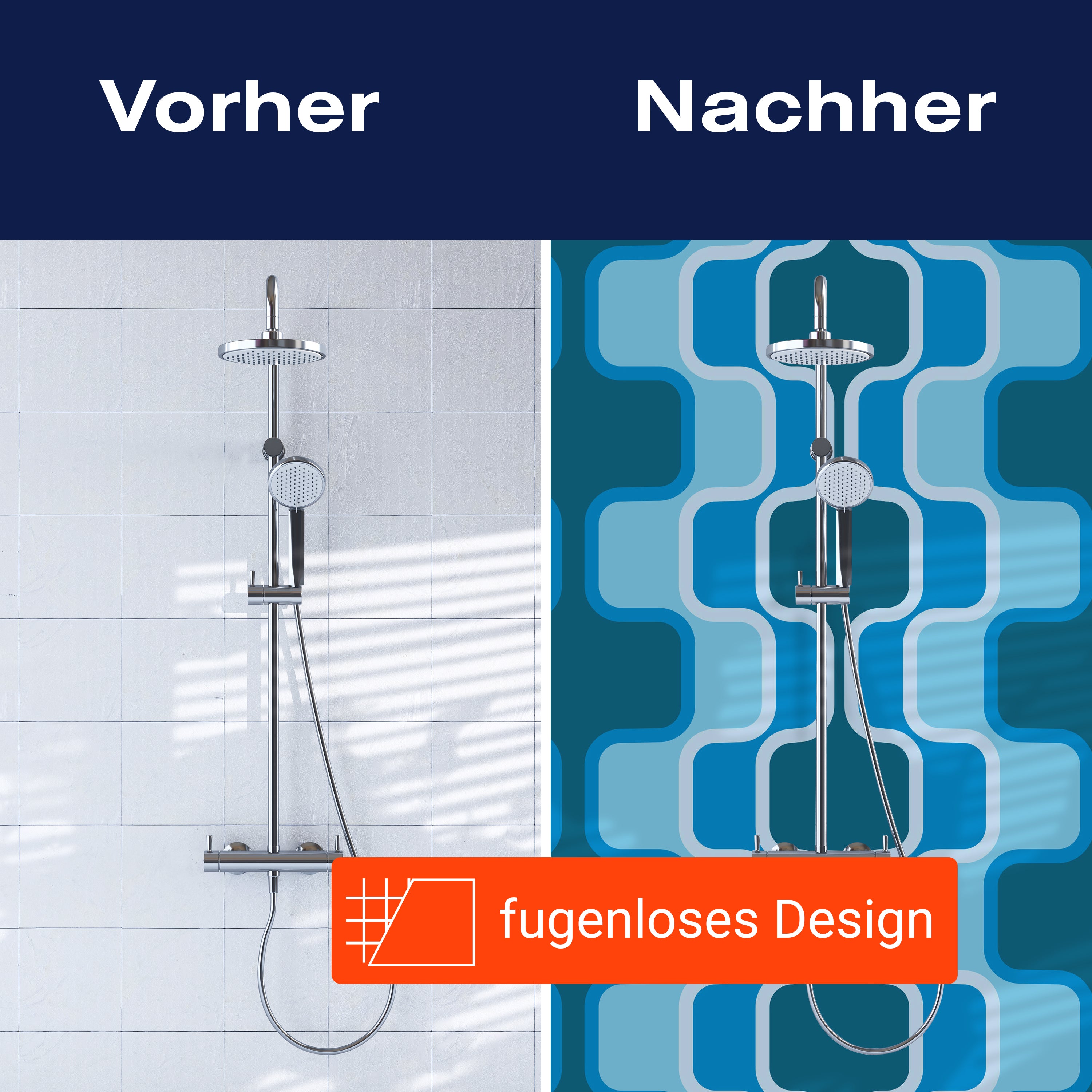 Bist du es leid, auf die langweiligen, schwer zu reinigende Fliesen in deiner Dusche zu schauen? Stell dir vor, wie dein Bad mit einer stilvollen, modernen Rückwand zum Leben erwacht! Unsere Duschwand 'Retromuster Blau Muster' ist nicht nur ein optisches Highlight, sondern auch praktisch und pflegeleicht.