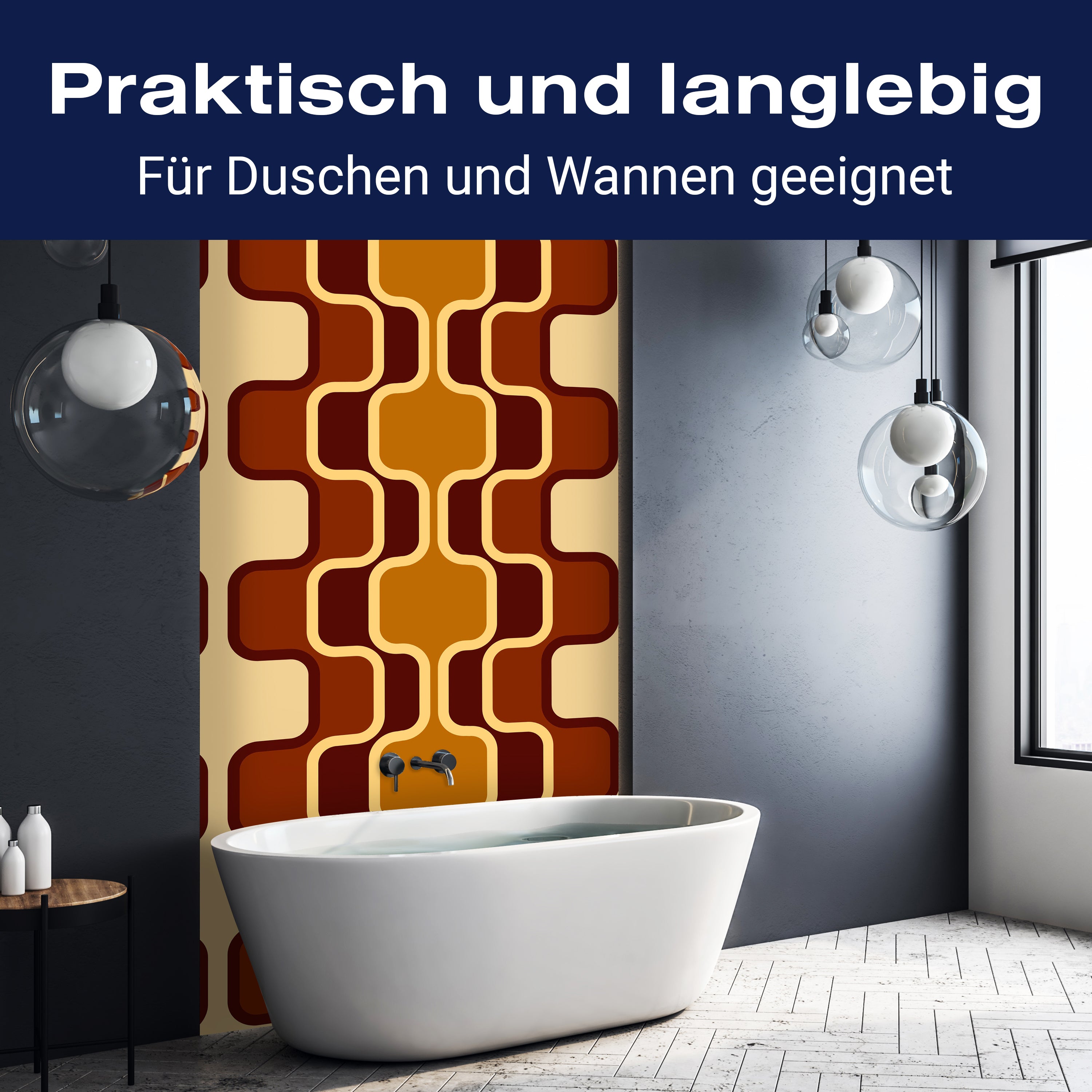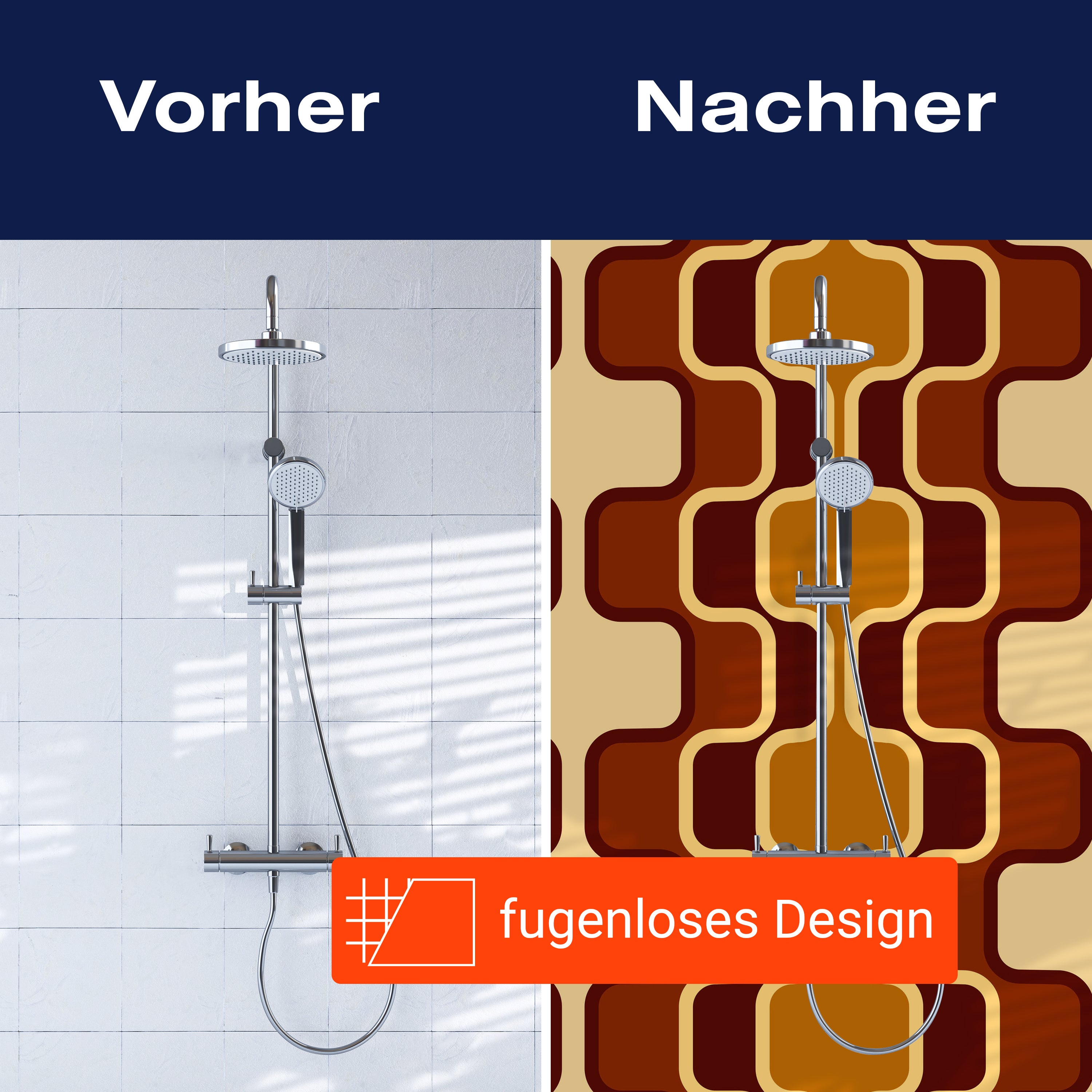 Bist du es leid, auf die langweiligen, schwer zu reinigende Fliesen in deiner Dusche zu schauen? Stell dir vor, wie dein Bad mit einer stilvollen, modernen Rückwand zum Leben erwacht! Unsere Duschwand 'Retromuster Braun Muster' ist nicht nur ein optisches Highlight, sondern auch praktisch und pflegeleicht.