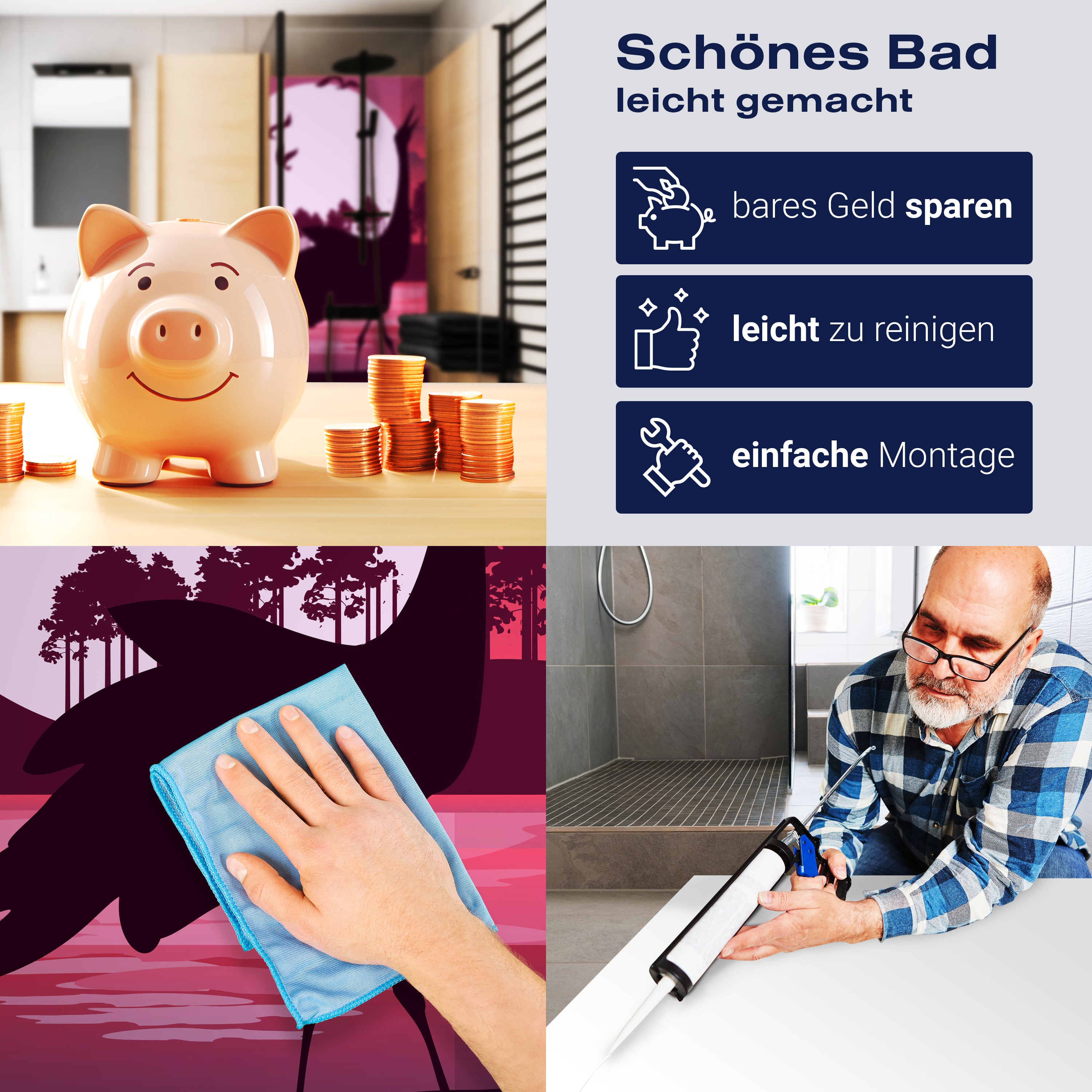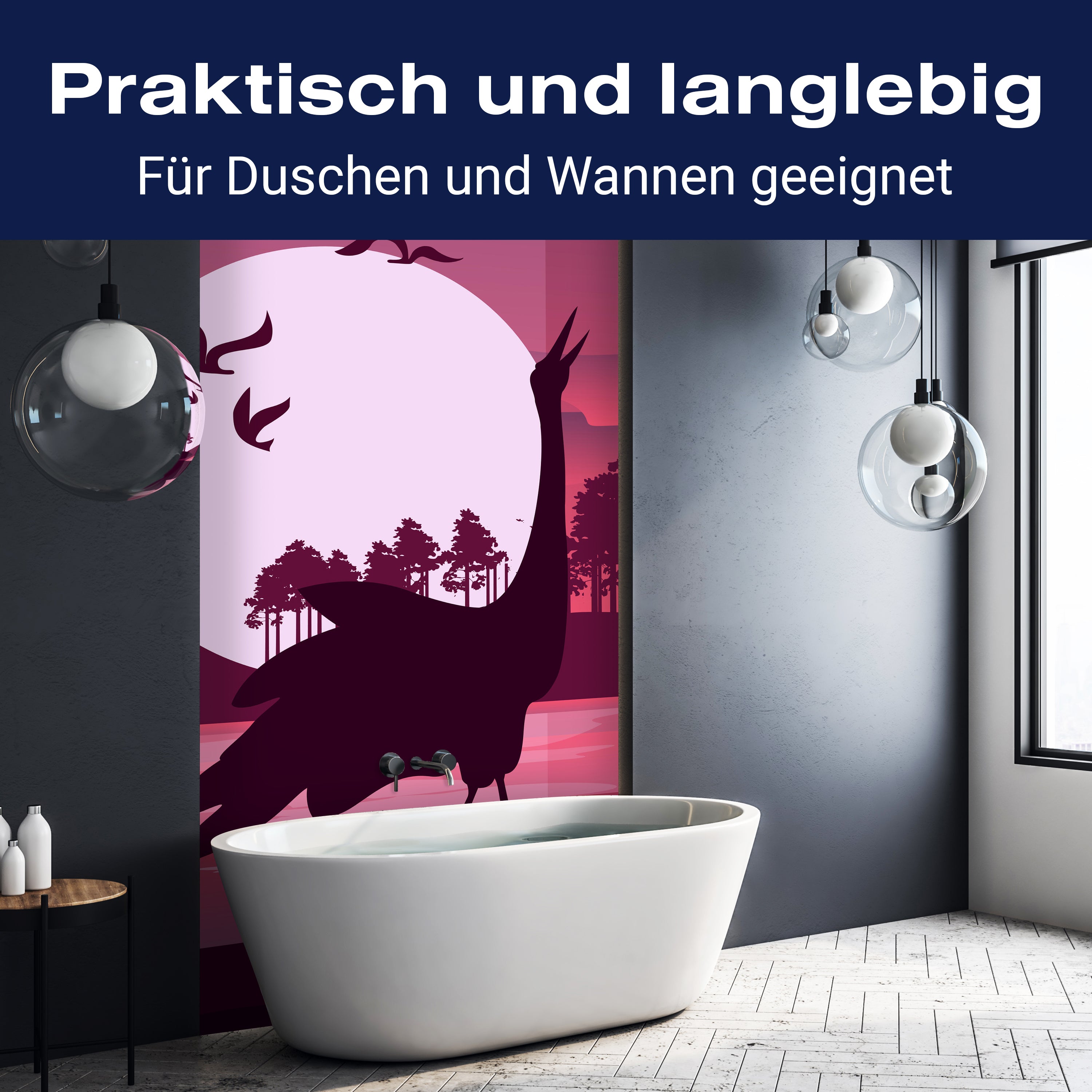 Bist du es leid, auf die langweiligen, schwer zu reinigende Fliesen in deiner Dusche zu schauen? Stell dir vor, wie dein Bad mit einer stilvollen, modernen Rückwand zum Leben erwacht! Unsere Duschwand 'Romantische Aussicht, Reihern' ist nicht nur ein optisches Highlight, sondern auch praktisch und pflegeleicht.
