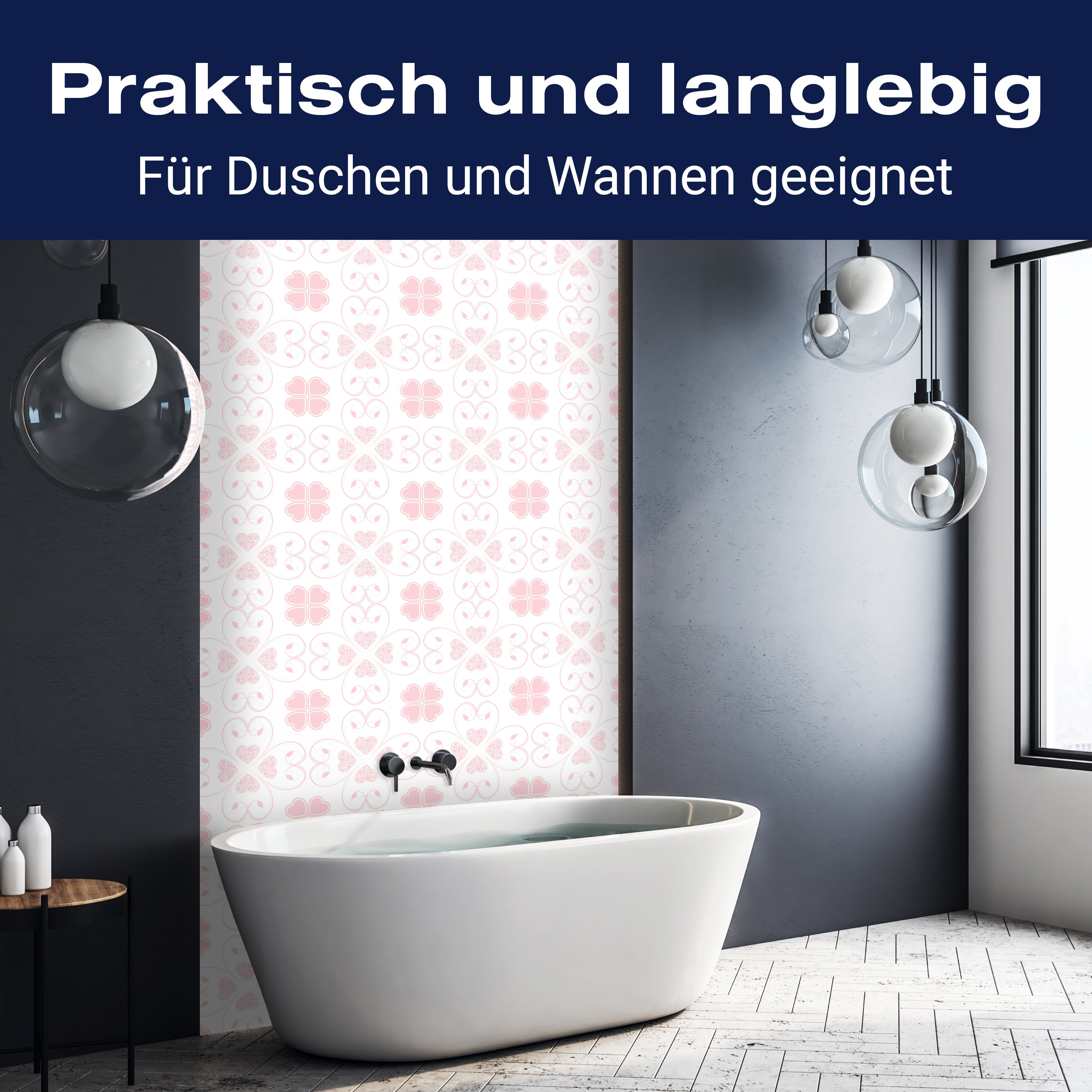 Bist du es leid, auf die langweiligen, schwer zu reinigende Fliesen in deiner Dusche zu schauen? Stell dir vor, wie dein Bad mit einer stilvollen, modernen Rückwand zum Leben erwacht! Unsere Duschwand 'Rosa Herzmuster' ist nicht nur ein optisches Highlight, sondern auch praktisch und pflegeleicht.
