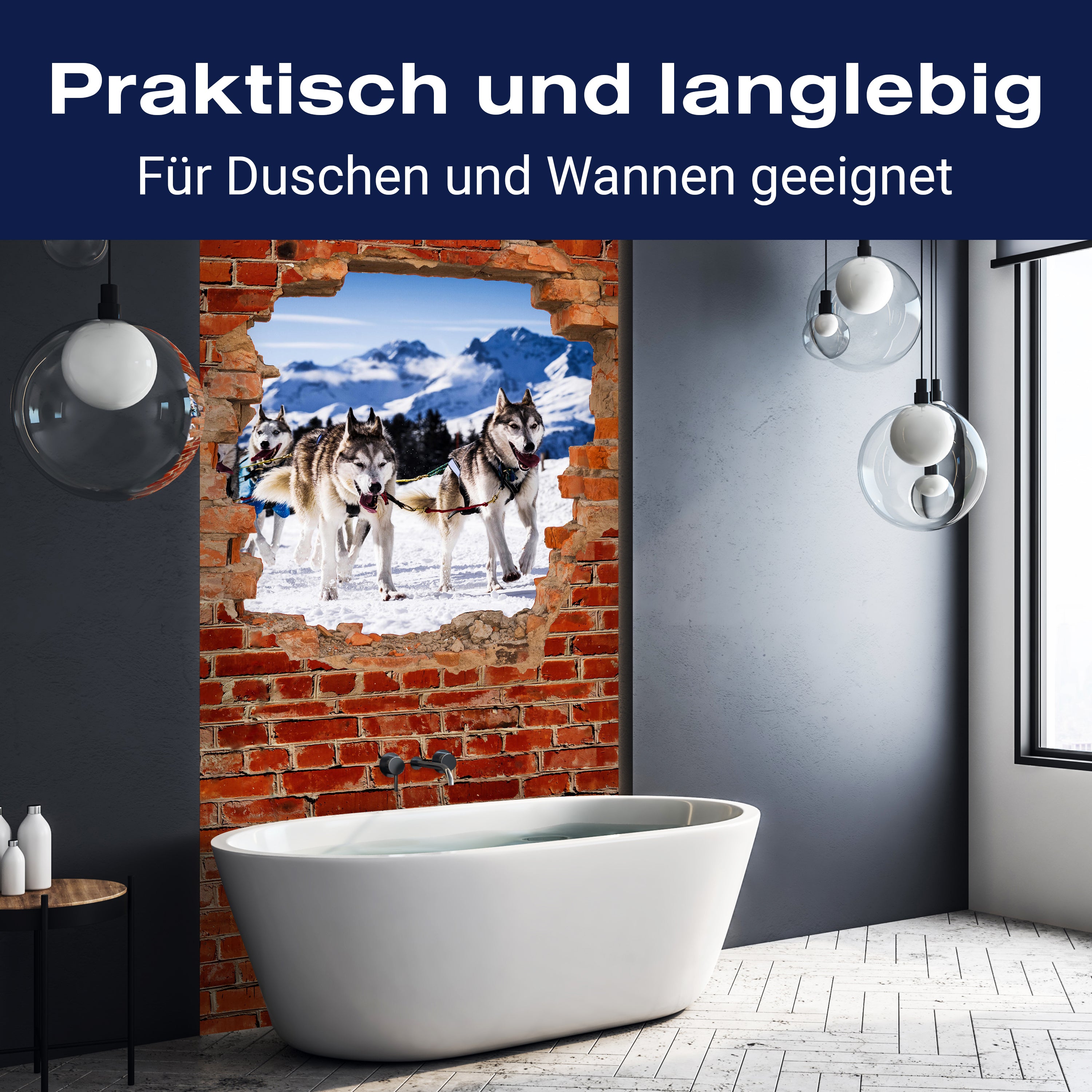 Vergiss die Tage, an denen Spritzer und Flecken deine Dusche ruiniert haben. Mit der Duschrückwand 'Schlittenhunde in Racing - Roter Backstein' gehören solche Sorgen der Vergangenheit an. Das hochwertige Material sorgt dafür, dass deine Dusche gegen Wasser und andere alltägliche Missgeschicke resistent ist. Ein einfacher Wisch, und sie sieht aus wie neu – ohne den Einsatz von aggressiven Reinigungsmitteln.