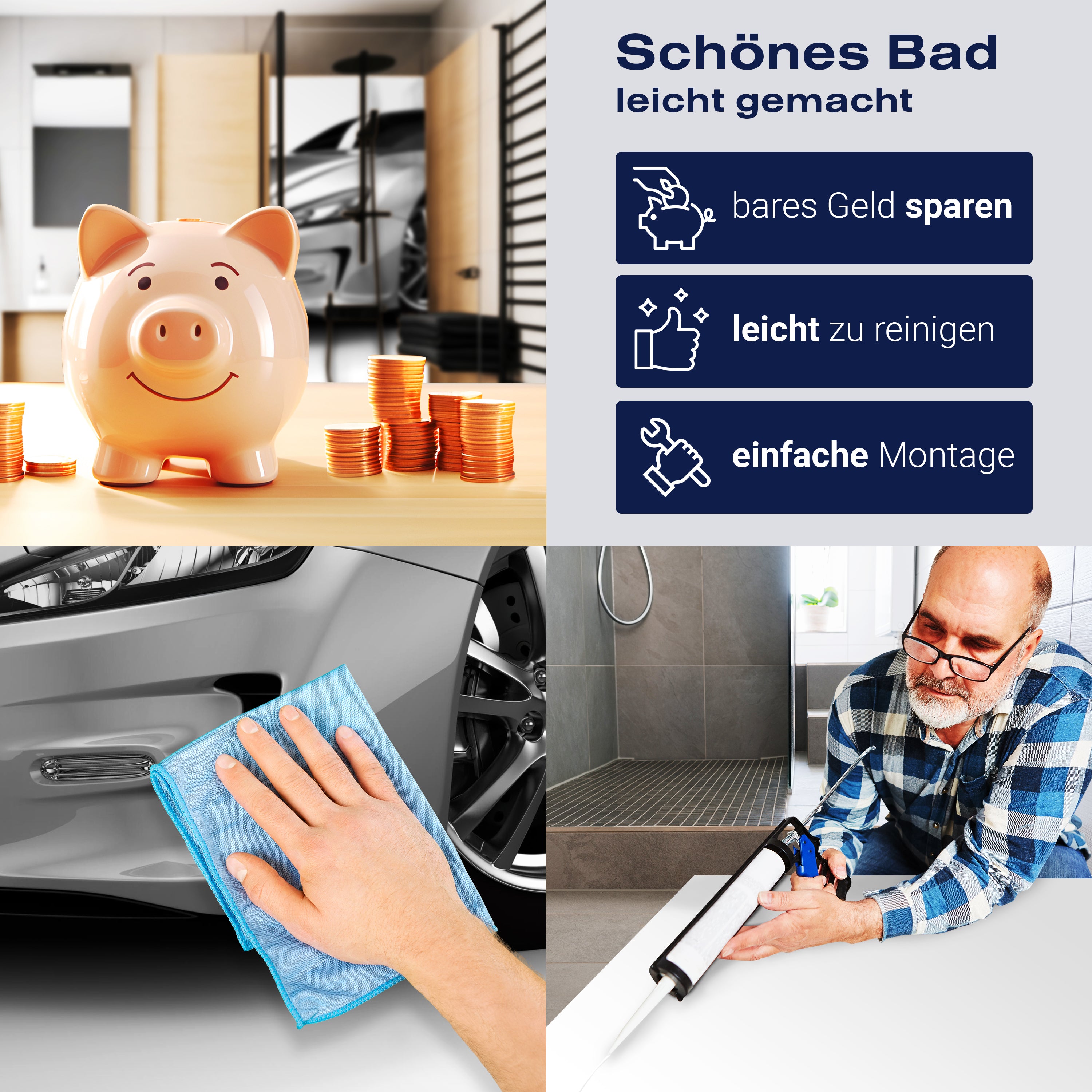 ür eine optimale Langlebigkeit ist es wichtig, die Duschrückwände richtig zu pflegen. Sie sollten regelmäßig mit einem weichen Tuch und milden Reinigungsmitteln gereinigt werden, um Kalk- und Seifenrückstände zu entfernen. Scheuermittel oder aggressive Chemikalien sollten vermieden werden, da diese die Oberfläche beschädigen können. Die fugenlose Oberfläche vereinfacht die Reinigung erheblich und trägt dazu bei, dass die Wandverkleidung hygienisch und ansprechend bleibt