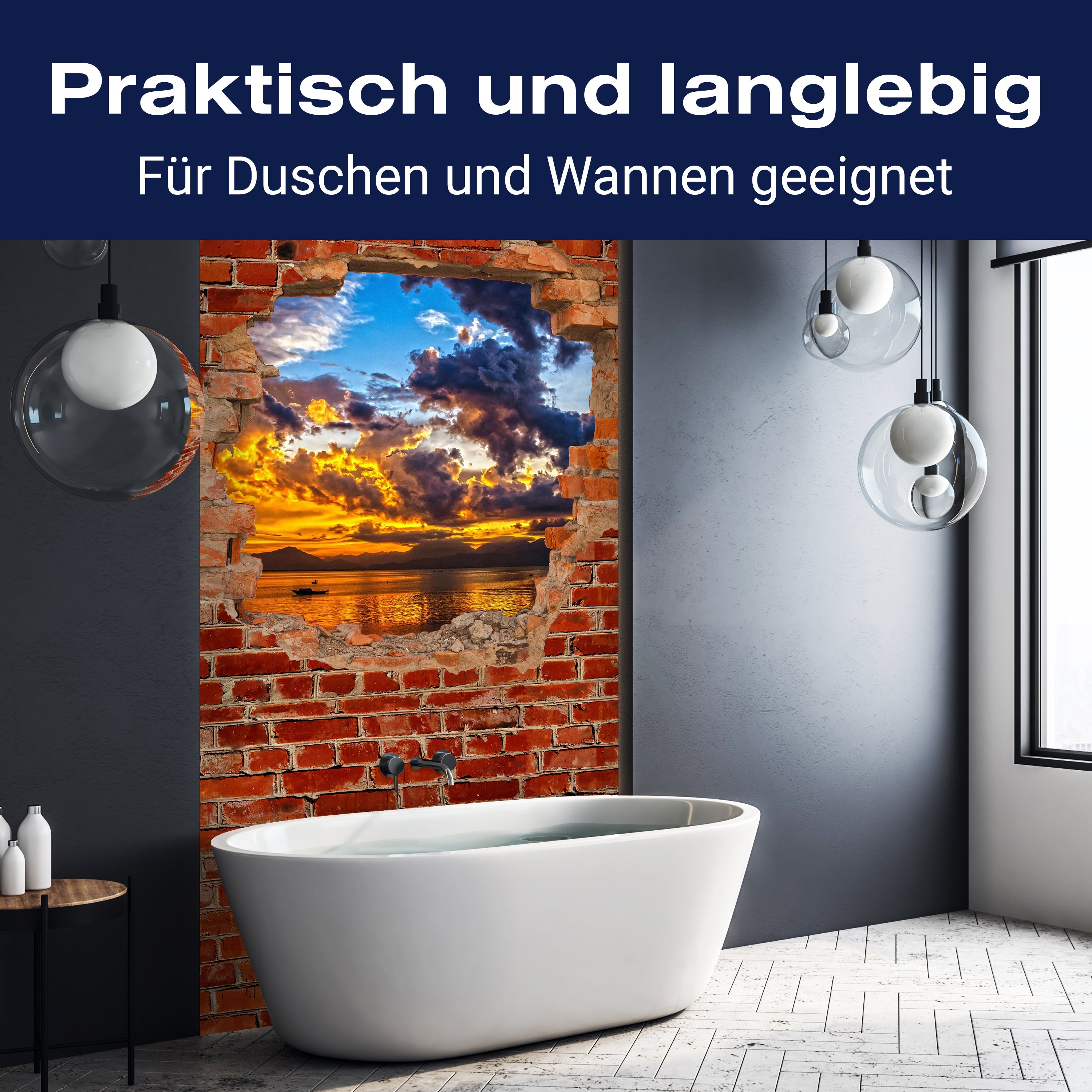 Vergiss die Tage, an denen Spritzer und Flecken deine Dusche ruiniert haben. Mit der Duschrückwand 'Sonnenuntergang im See - Roter Backstein' gehören solche Sorgen der Vergangenheit an. Das hochwertige Material sorgt dafür, dass deine Dusche gegen Wasser und andere alltägliche Missgeschicke resistent ist. Ein einfacher Wisch, und sie sieht aus wie neu – ohne den Einsatz von aggressiven Reinigungsmitteln.