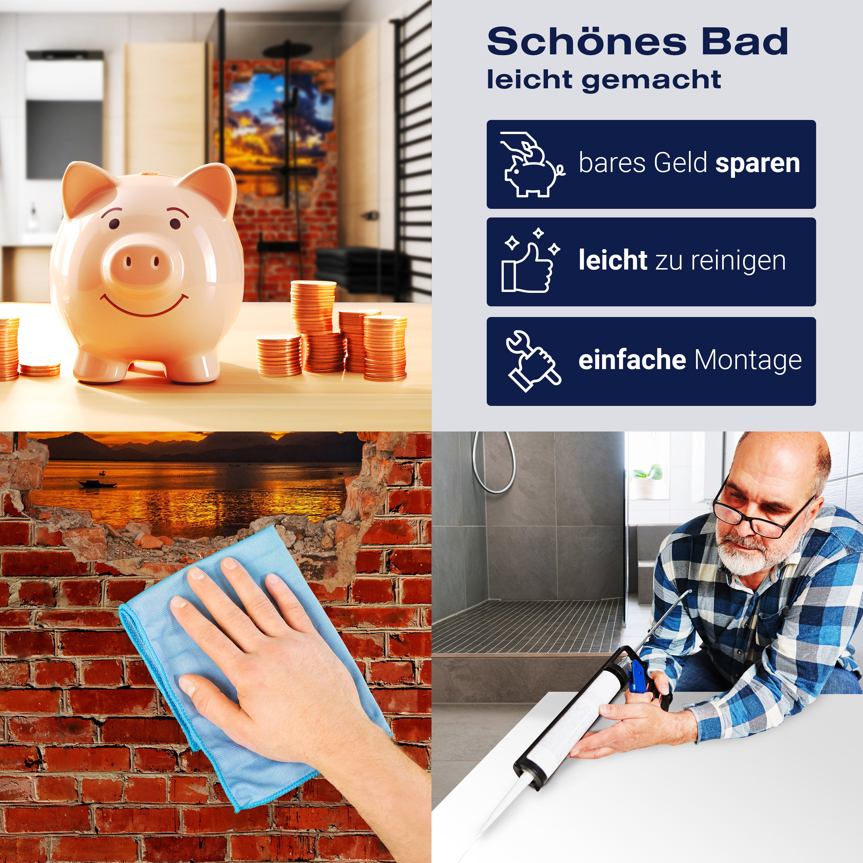 Diese Materialien bieten im Vergleich zu traditionellen Fliesen mehrere Vorteile. Sie haben eine fugenlose Oberfläche, was bedeutet, dass sie weniger anfällig für Schimmelbildung und leichter zu reinigen sind, da sich Schmutz und Kalk nicht in Fugen festsetzen können. Darüber hinaus ermöglichen sie eine schnelle und einfache Renovierung, da sie direkt über bestehenden Fliesen montiert werden können, was Zeit und Kosten spart