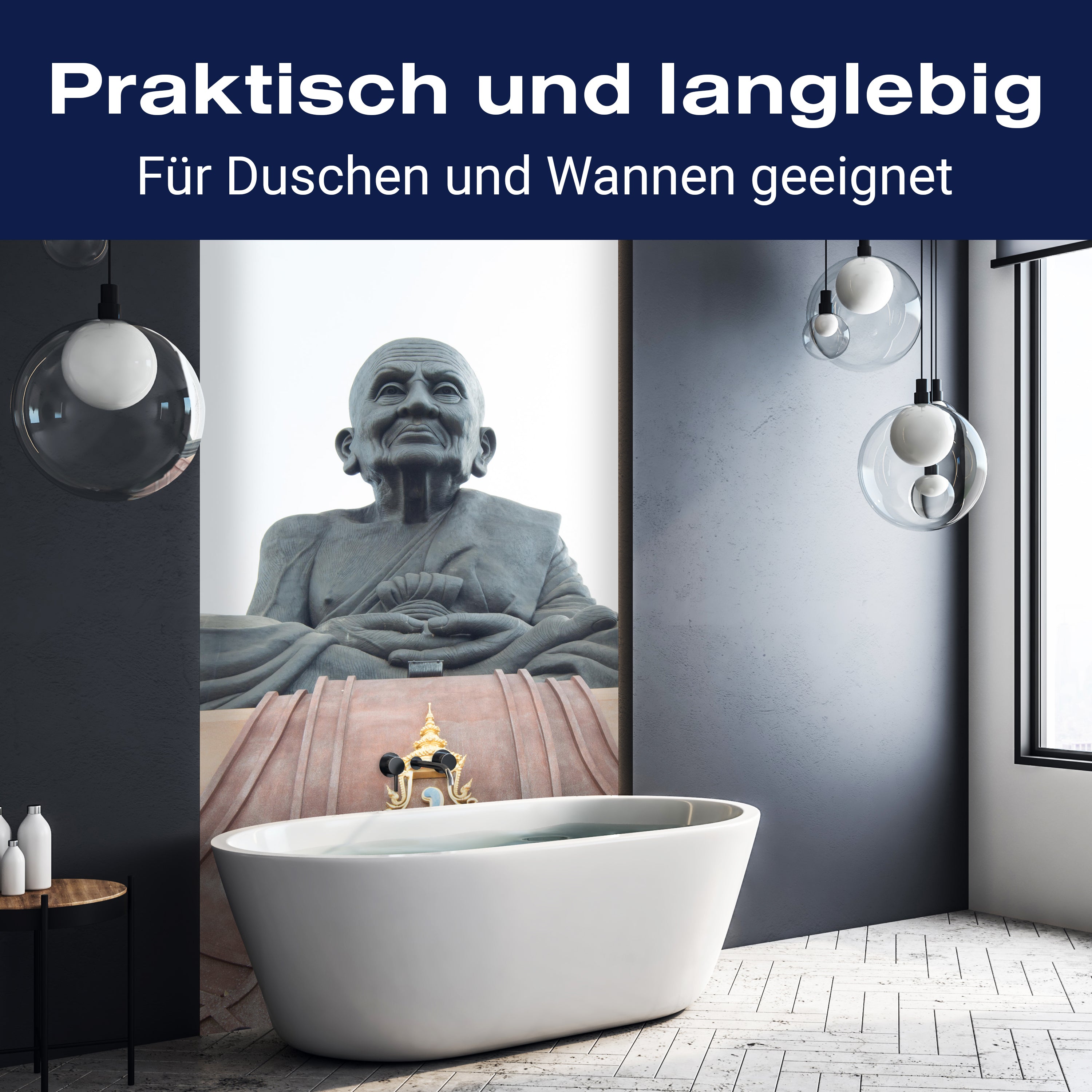 Bist du es leid, auf die langweiligen, schwer zu reinigende Fliesen in deiner Dusche zu schauen? Stell dir vor, wie dein Bad mit einer stilvollen, modernen Rückwand zum Leben erwacht! Unsere Duschwand 'Statue Tempel in Thailand' ist nicht nur ein optisches Highlight, sondern auch praktisch und pflegeleicht.