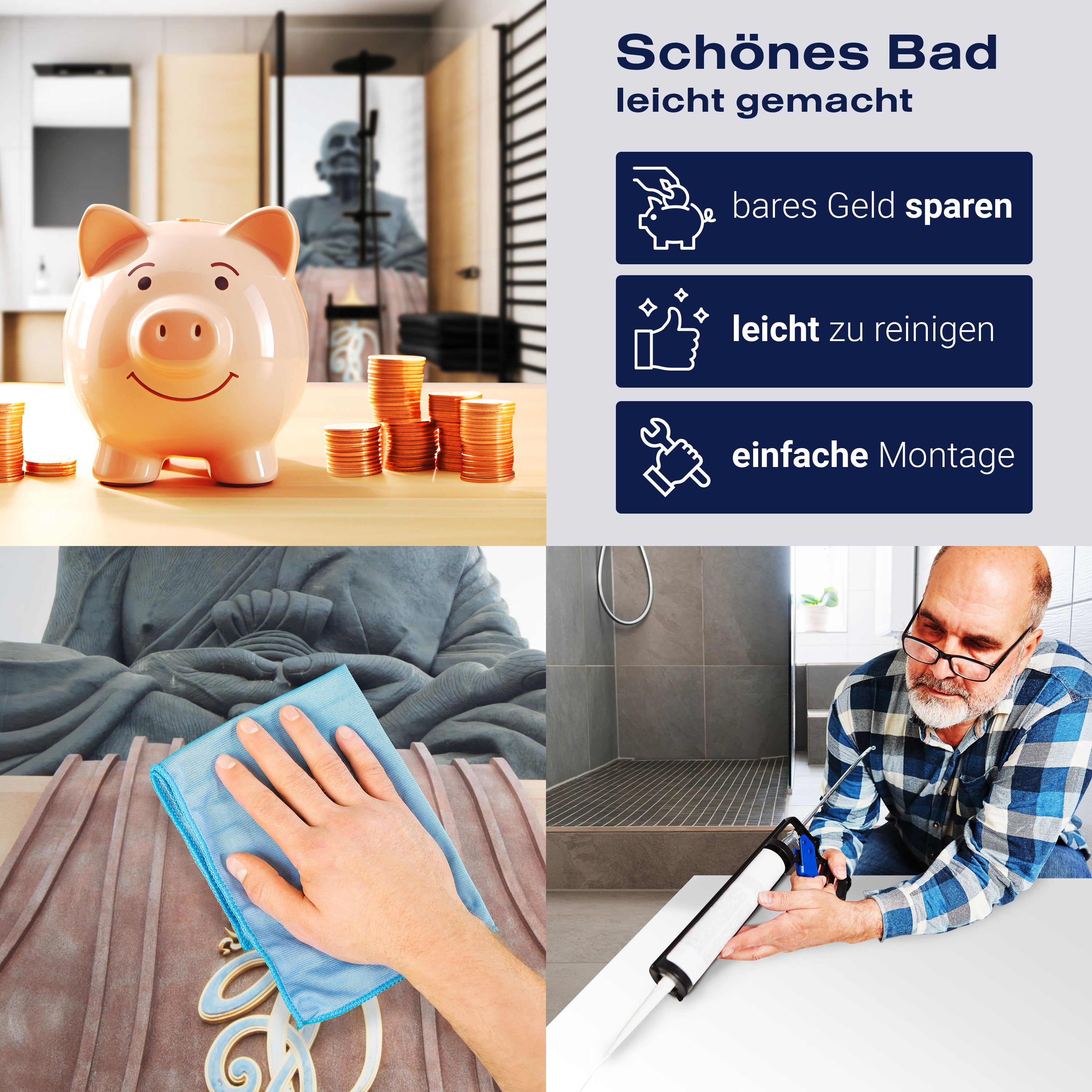 ür eine optimale Langlebigkeit ist es wichtig, die Duschrückwände richtig zu pflegen. Sie sollten regelmäßig mit einem weichen Tuch und milden Reinigungsmitteln gereinigt werden, um Kalk- und Seifenrückstände zu entfernen. Scheuermittel oder aggressive Chemikalien sollten vermieden werden, da diese die Oberfläche beschädigen können. Die fugenlose Oberfläche vereinfacht die Reinigung erheblich und trägt dazu bei, dass die Wandverkleidung hygienisch und ansprechend bleibt