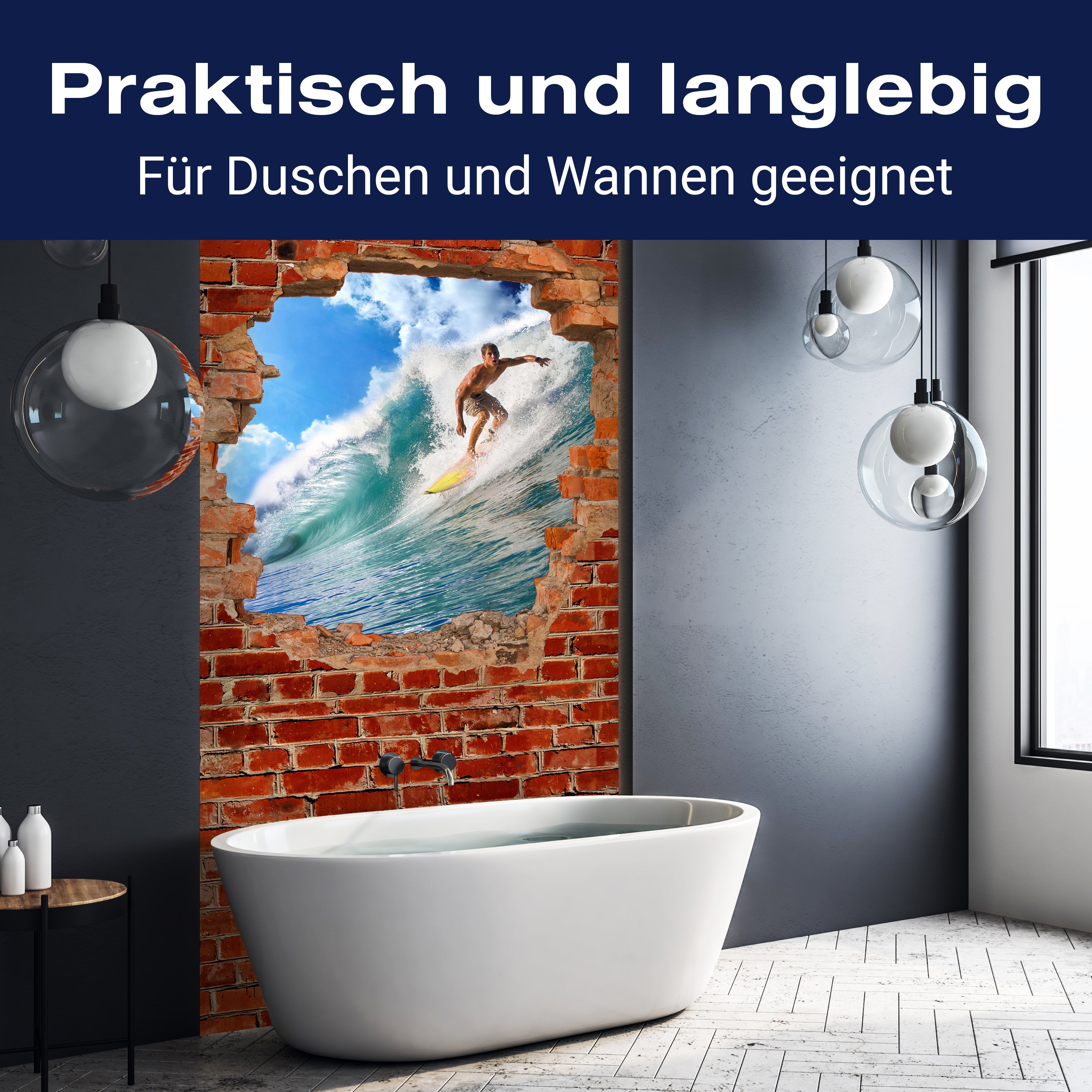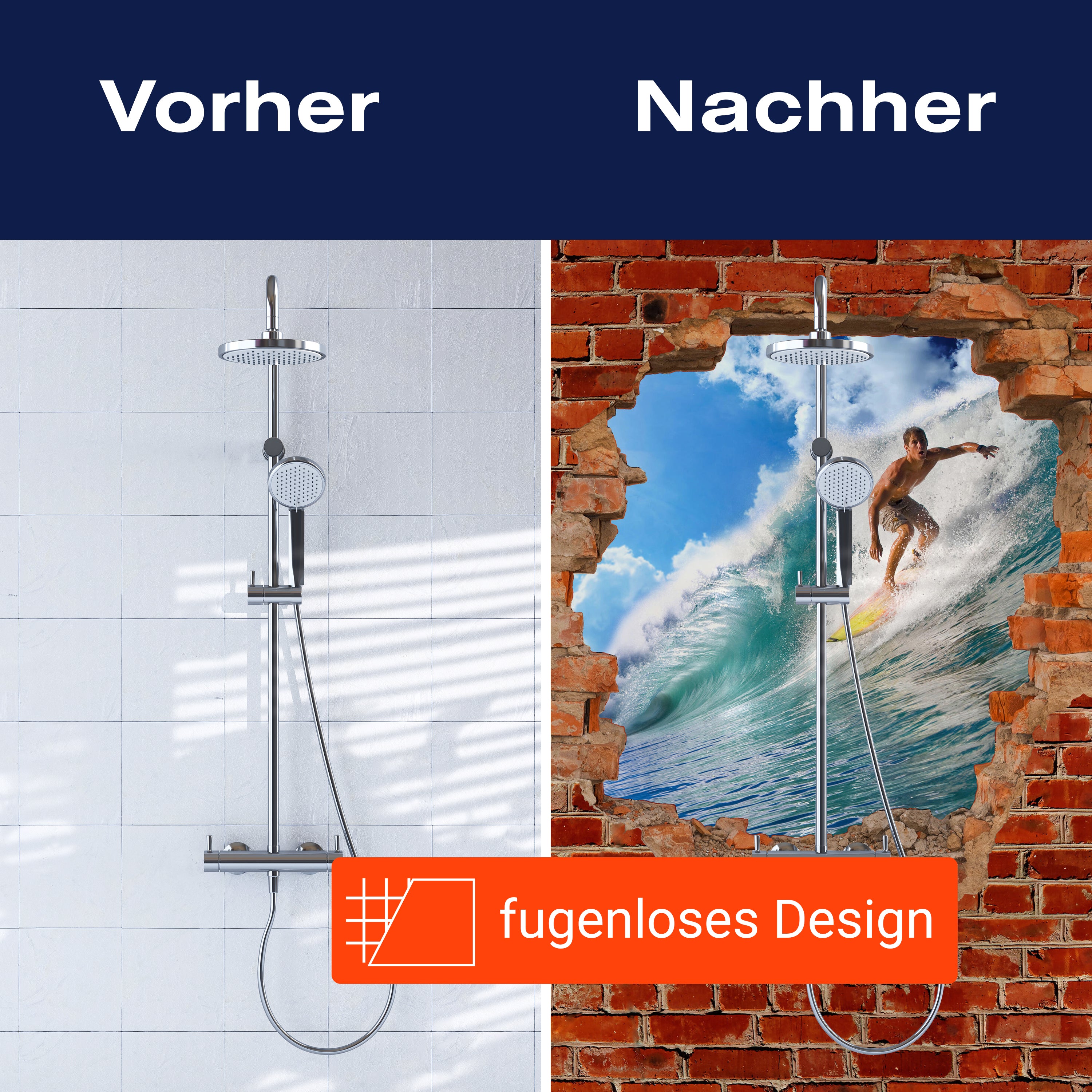 Bist du es leid, auf die langweiligen, schwer zu reinigende Fliesen in deiner Dusche zu schauen? Stell dir vor, wie dein Bad mit einer stilvollen, modernen Rückwand zum Leben erwacht! Unsere Duschwand 'Surfing - Roter Backstein' ist nicht nur ein optisches Highlight, sondern auch praktisch und pflegeleicht.