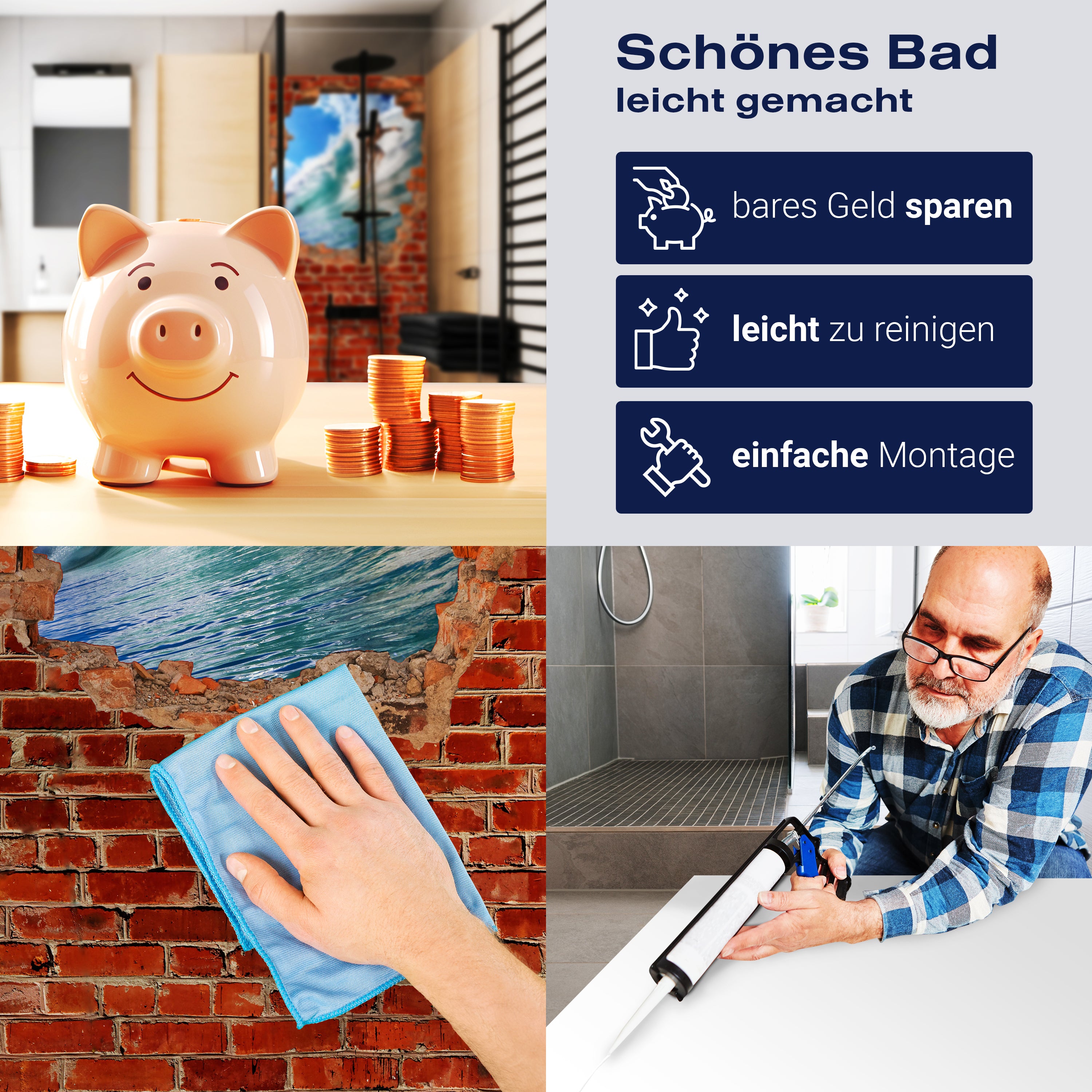 Diese Materialien bieten im Vergleich zu traditionellen Fliesen mehrere Vorteile. Sie haben eine fugenlose Oberfläche, was bedeutet, dass sie weniger anfällig für Schimmelbildung und leichter zu reinigen sind, da sich Schmutz und Kalk nicht in Fugen festsetzen können. Darüber hinaus ermöglichen sie eine schnelle und einfache Renovierung, da sie direkt über bestehenden Fliesen montiert werden können, was Zeit und Kosten spart