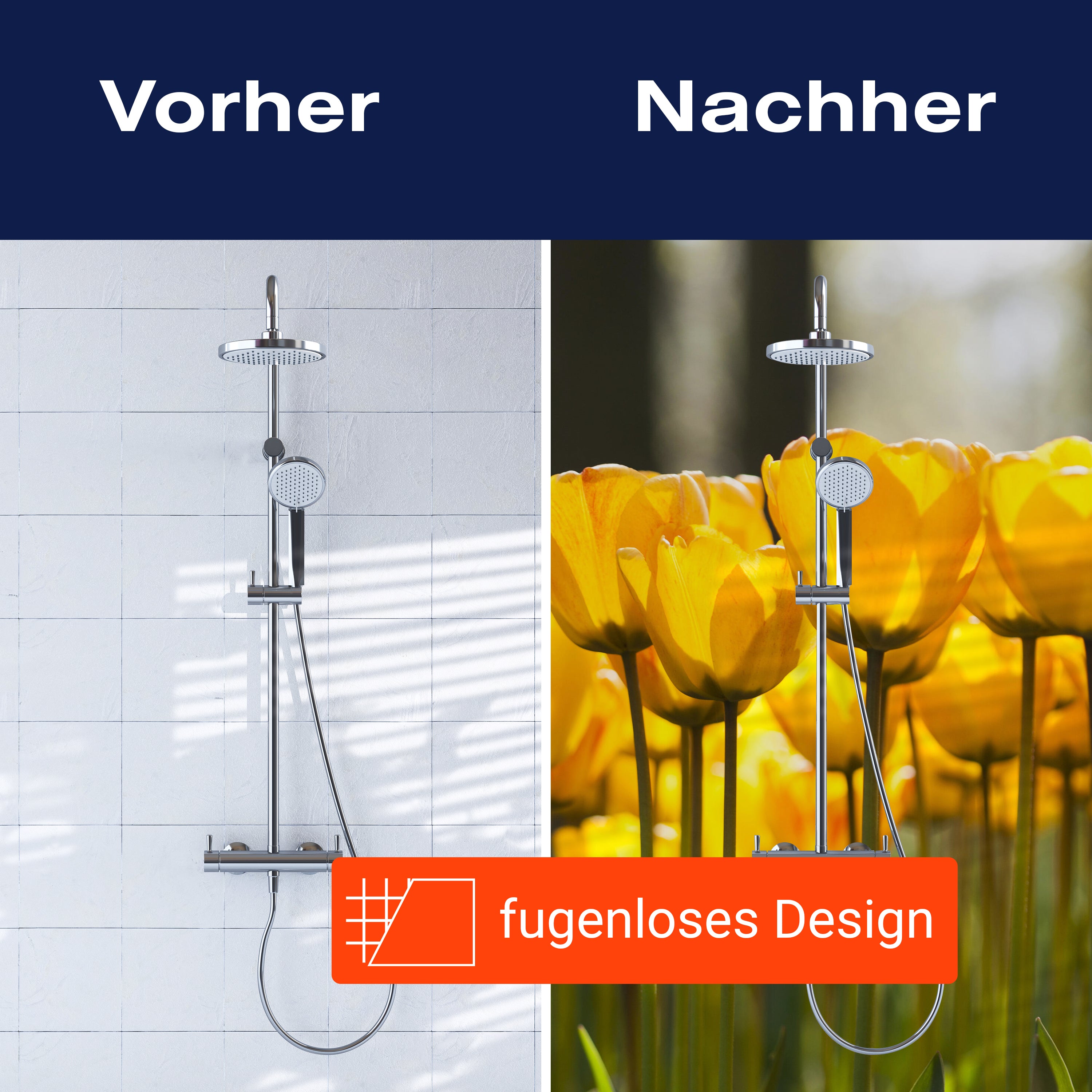 Bist du es leid, auf die langweiligen, schwer zu reinigende Fliesen in deiner Dusche zu schauen? Stell dir vor, wie dein Bad mit einer stilvollen, modernen Rückwand zum Leben erwacht! Unsere Duschwand 'Tulpen im Garten' ist nicht nur ein optisches Highlight, sondern auch praktisch und pflegeleicht.
