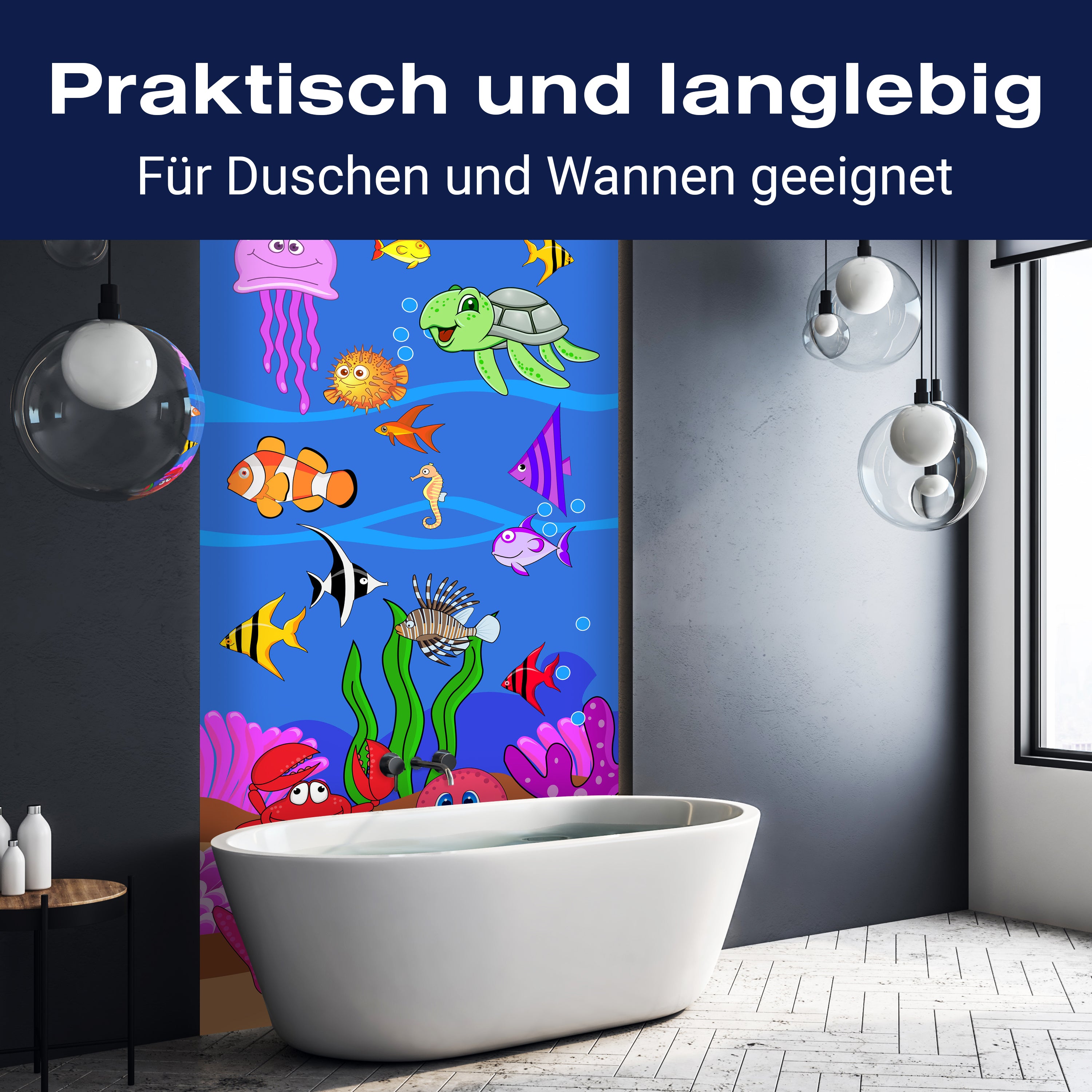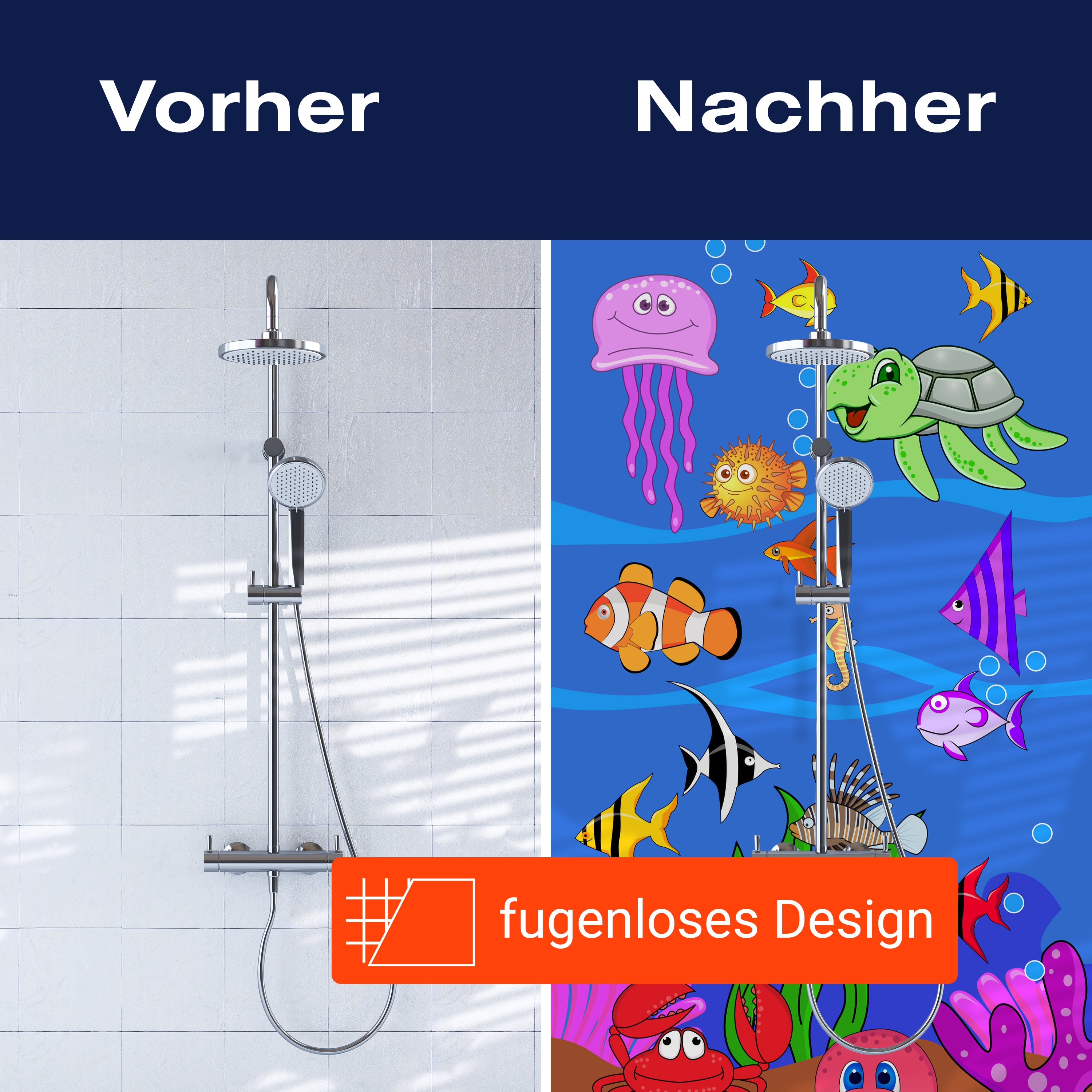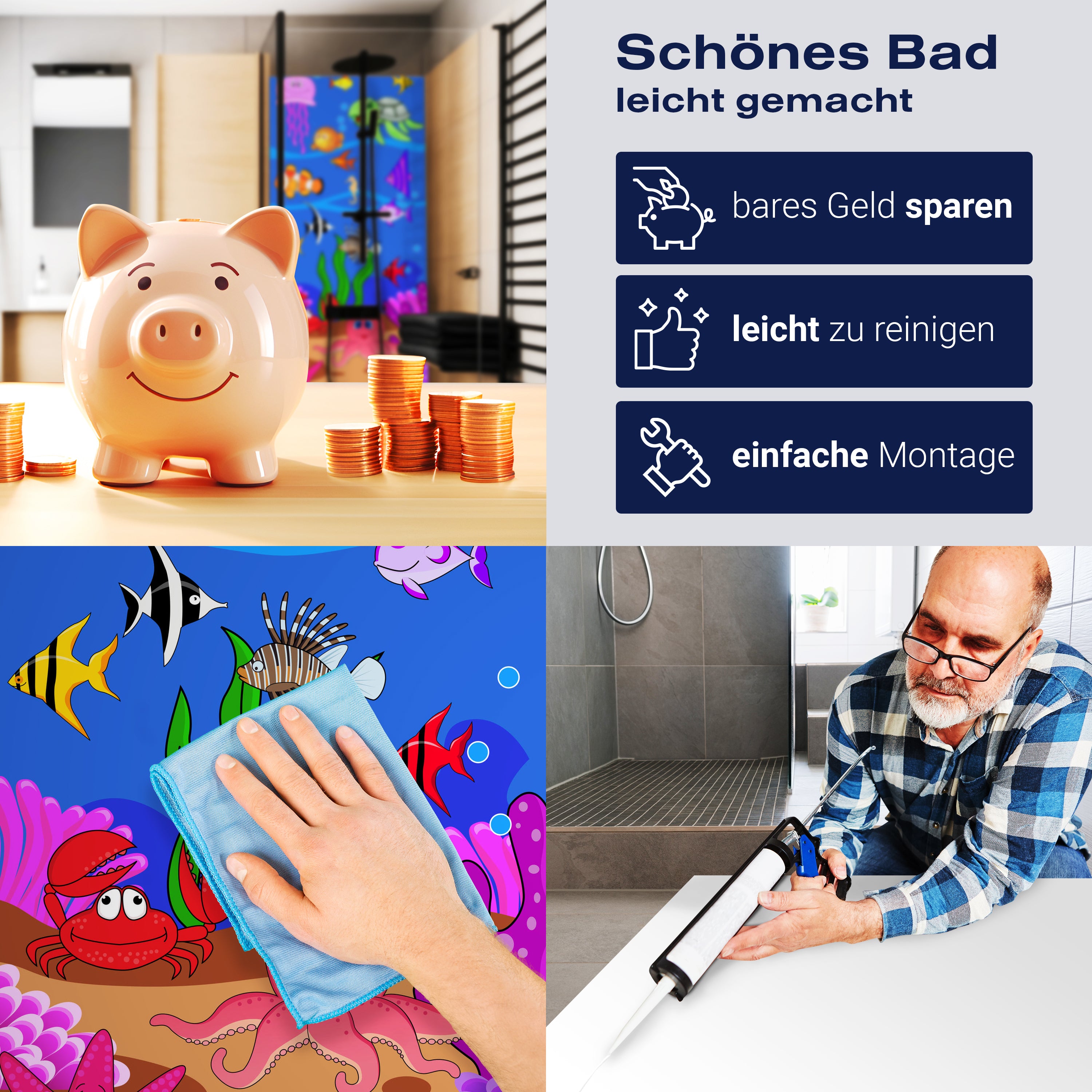 Bist du es leid, auf die langweiligen, schwer zu reinigende Fliesen in deiner Dusche zu schauen? Stell dir vor, wie dein Bad mit einer stilvollen, modernen Rückwand zum Leben erwacht! Unsere Duschwand 'Unterwasserwelt' ist nicht nur ein optisches Highlight, sondern auch praktisch und pflegeleicht.