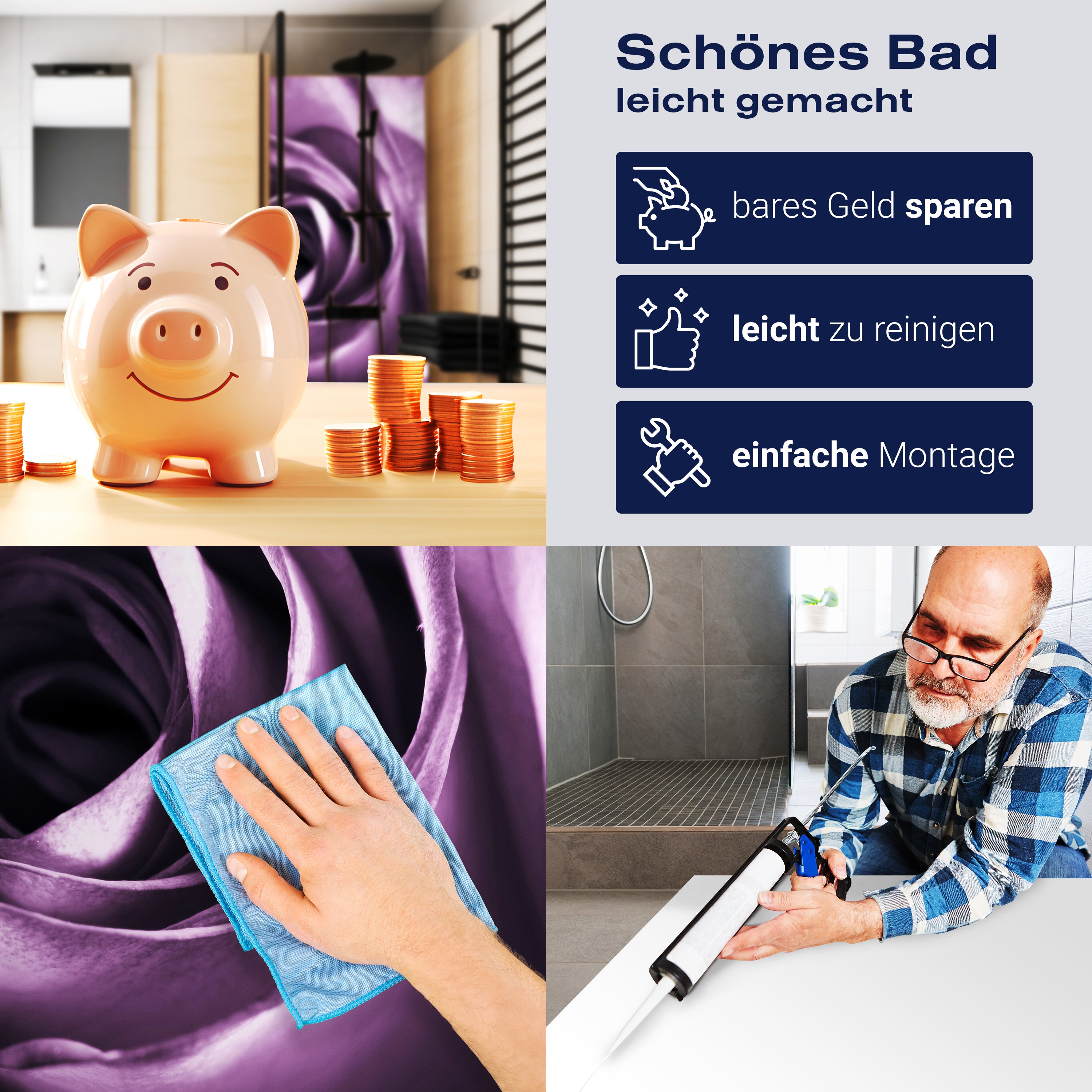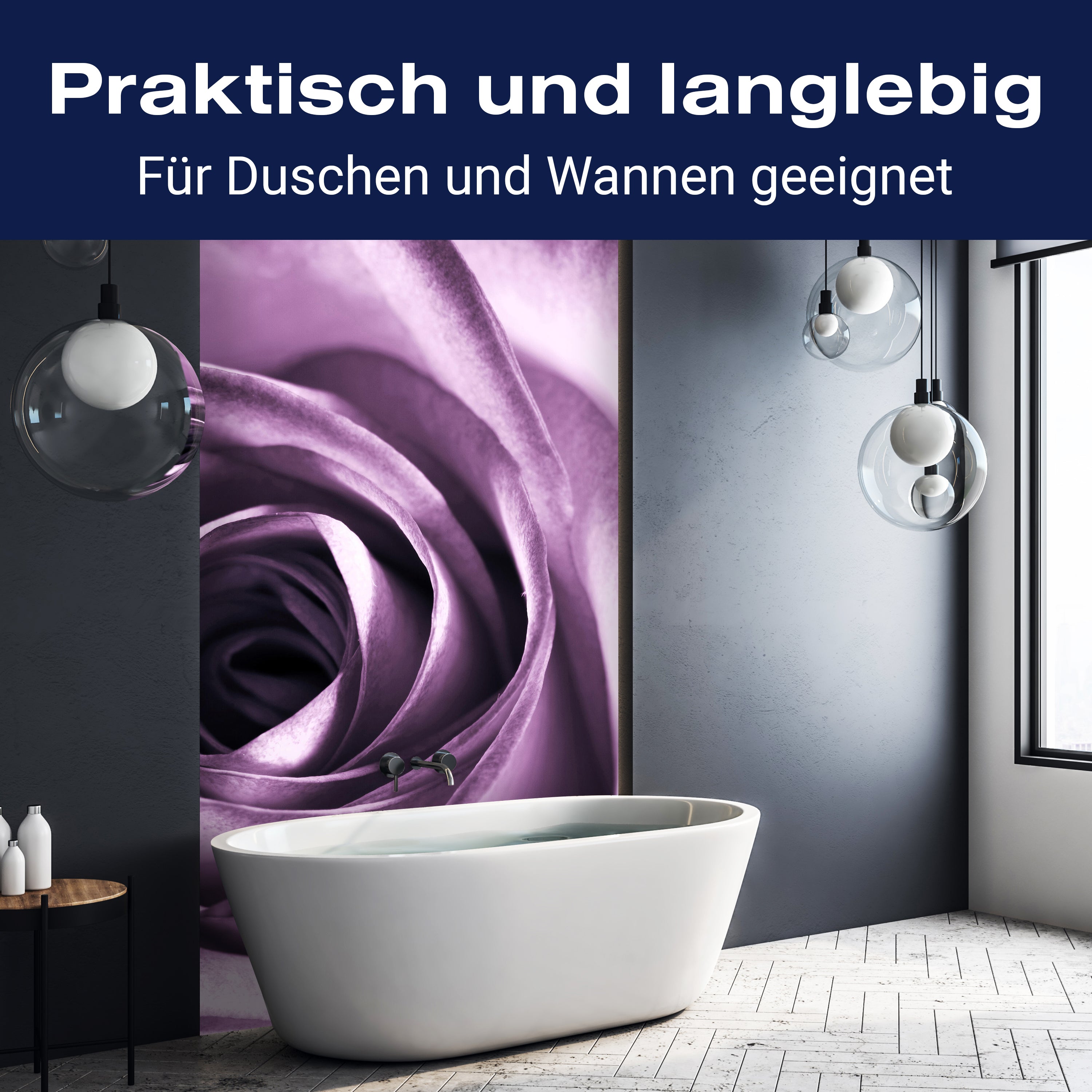 Bist du es leid, auf die langweiligen, schwer zu reinigende Fliesen in deiner Dusche zu schauen? Stell dir vor, wie dein Bad mit einer stilvollen, modernen Rückwand zum Leben erwacht! Unsere Duschwand 'violette Rose' ist nicht nur ein optisches Highlight, sondern auch praktisch und pflegeleicht.