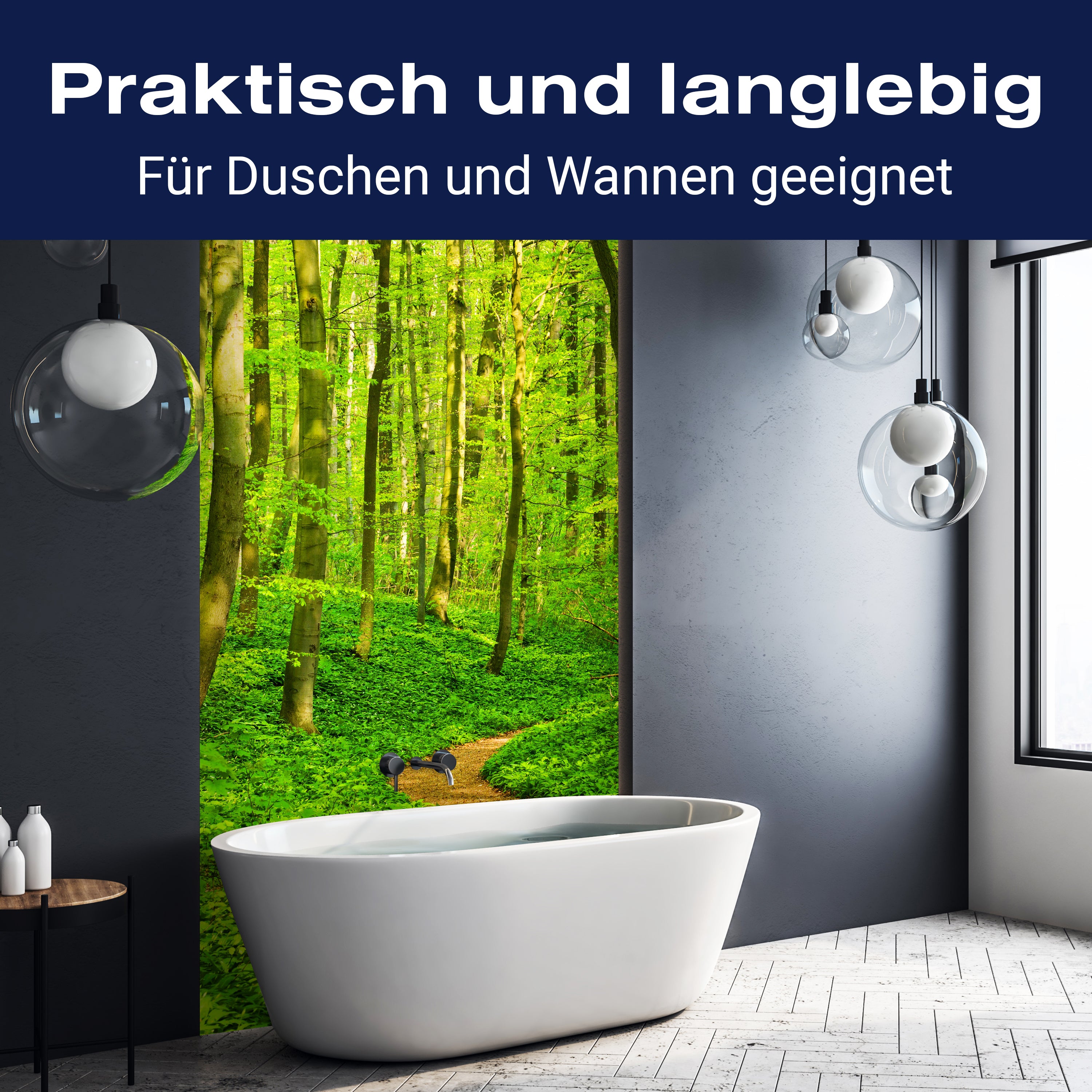 Bist du es leid, auf die langweiligen, schwer zu reinigende Fliesen in deiner Dusche zu schauen? Stell dir vor, wie dein Bad mit einer stilvollen, modernen Rückwand zum Leben erwacht! Unsere Duschwand 'Waldpfad' ist nicht nur ein optisches Highlight, sondern auch praktisch und pflegeleicht.