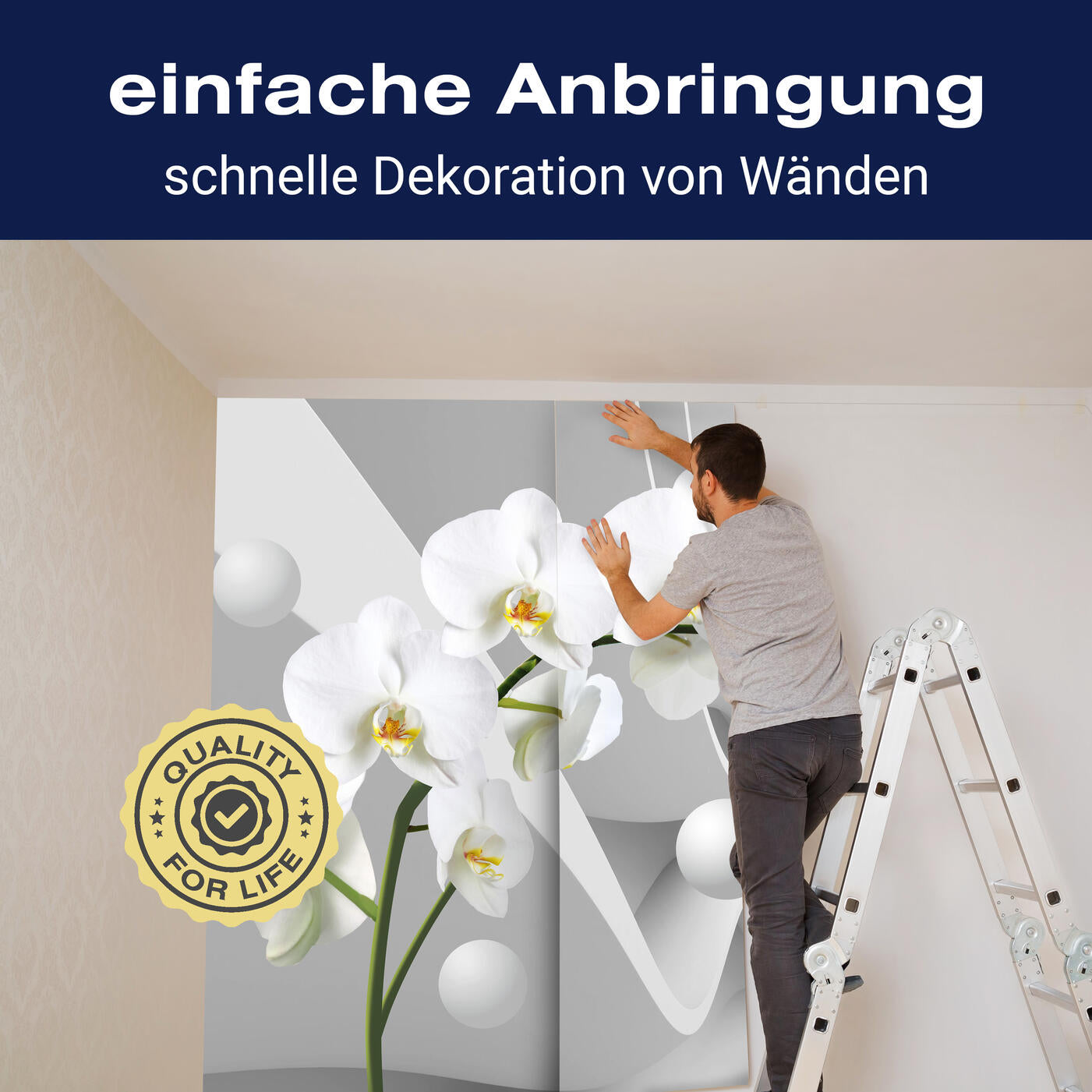 FOTOTAPETE 3D Effekt Blumen Orchideen Kugeln