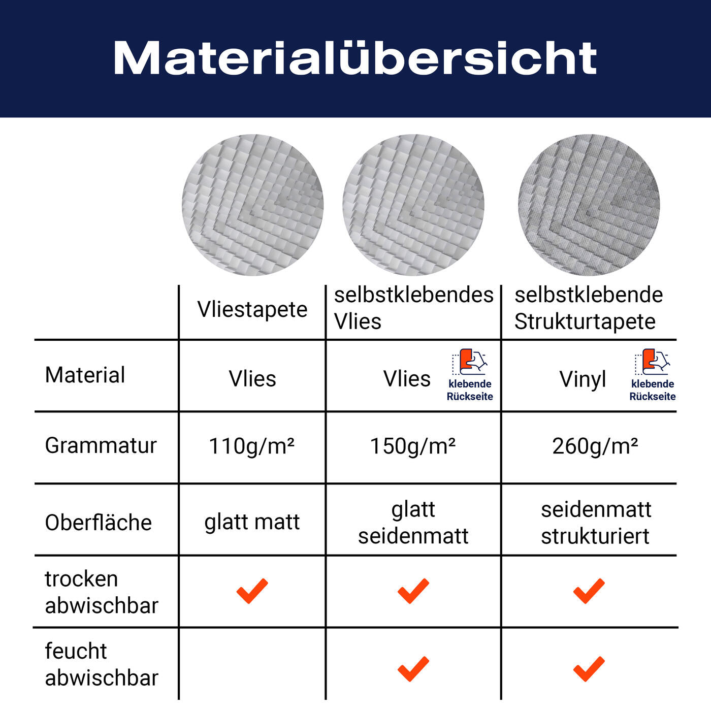 - Selbstklebendes Vlies 150g/m²: Einfach anzubringen, perfekt für Mietwohnungen.