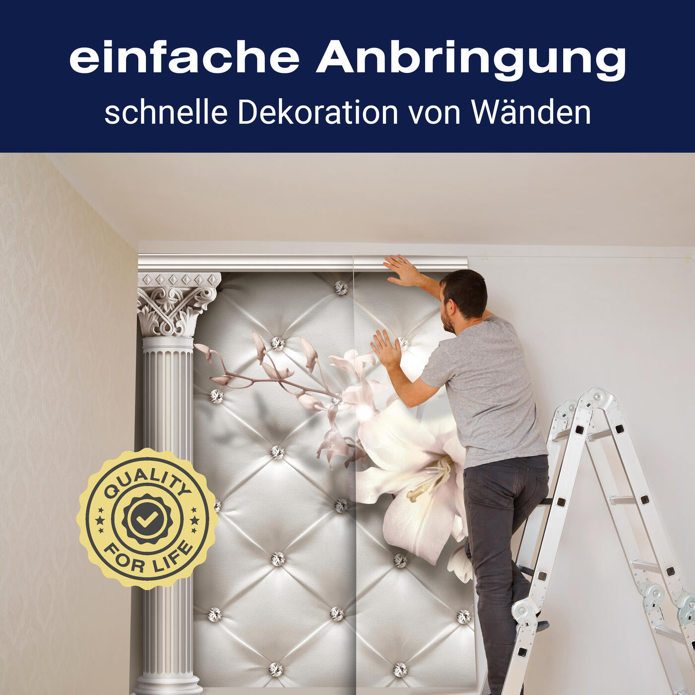 Träumst Du davon, Deine Wände in eine beeindruckende Kunstgalerie zu verwandeln? Mit unserer hochwertigen Fototapete 3D Effekt Säulen Blüten Diamanten M6100 ist es jetzt möglich! Jede Wand wird zu einer Leinwand Deiner Kreativität.