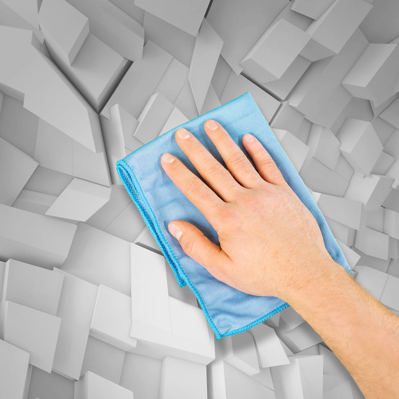 - Reinige eventuelle Verschmutzungen oder Kleberreste sofort mit einem feuchten Schwamm oder Tuch.
