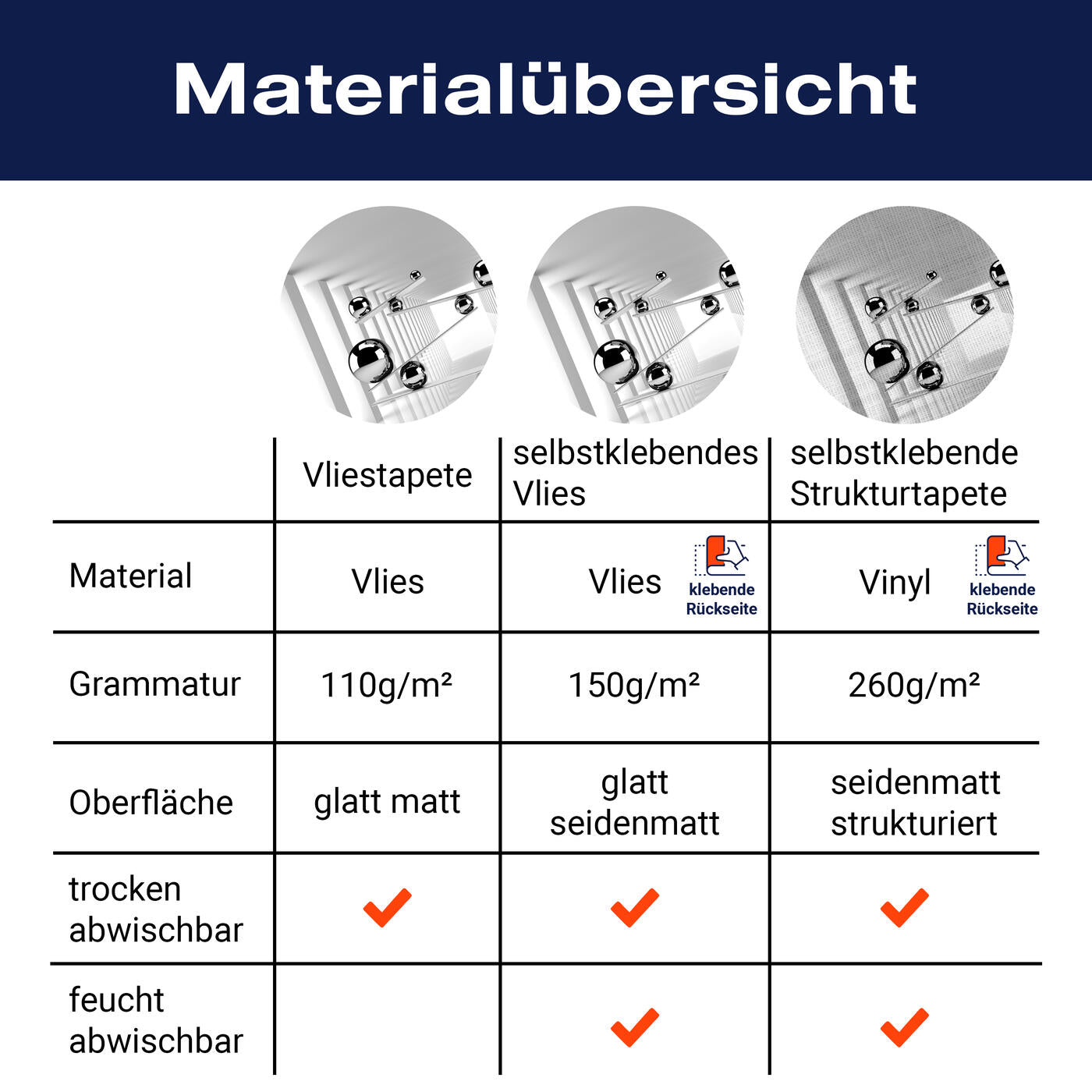 Die Fototapeten sind pflegeleicht und können mit einem feuchten Tuch gereinigt werden, ohne die Farbbrillanz zu beeinträchtigen.