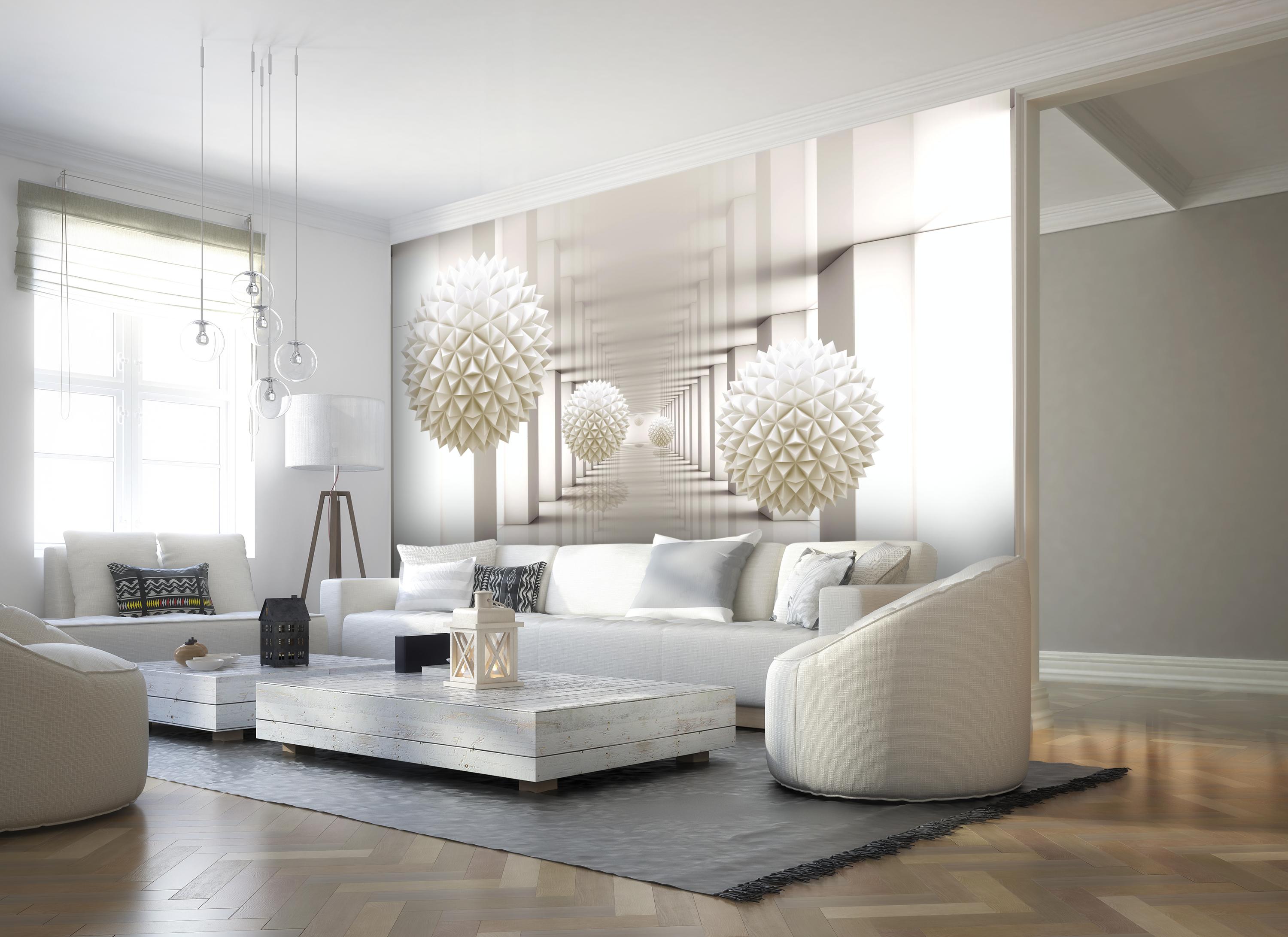 FOTOTAPETE 3D Weiss Kugeln helles Raum Licht Effekt