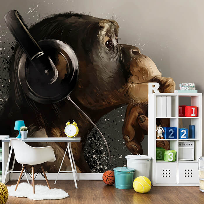 FOTOTAPETE Affe Schimpanse Kopfhörer
