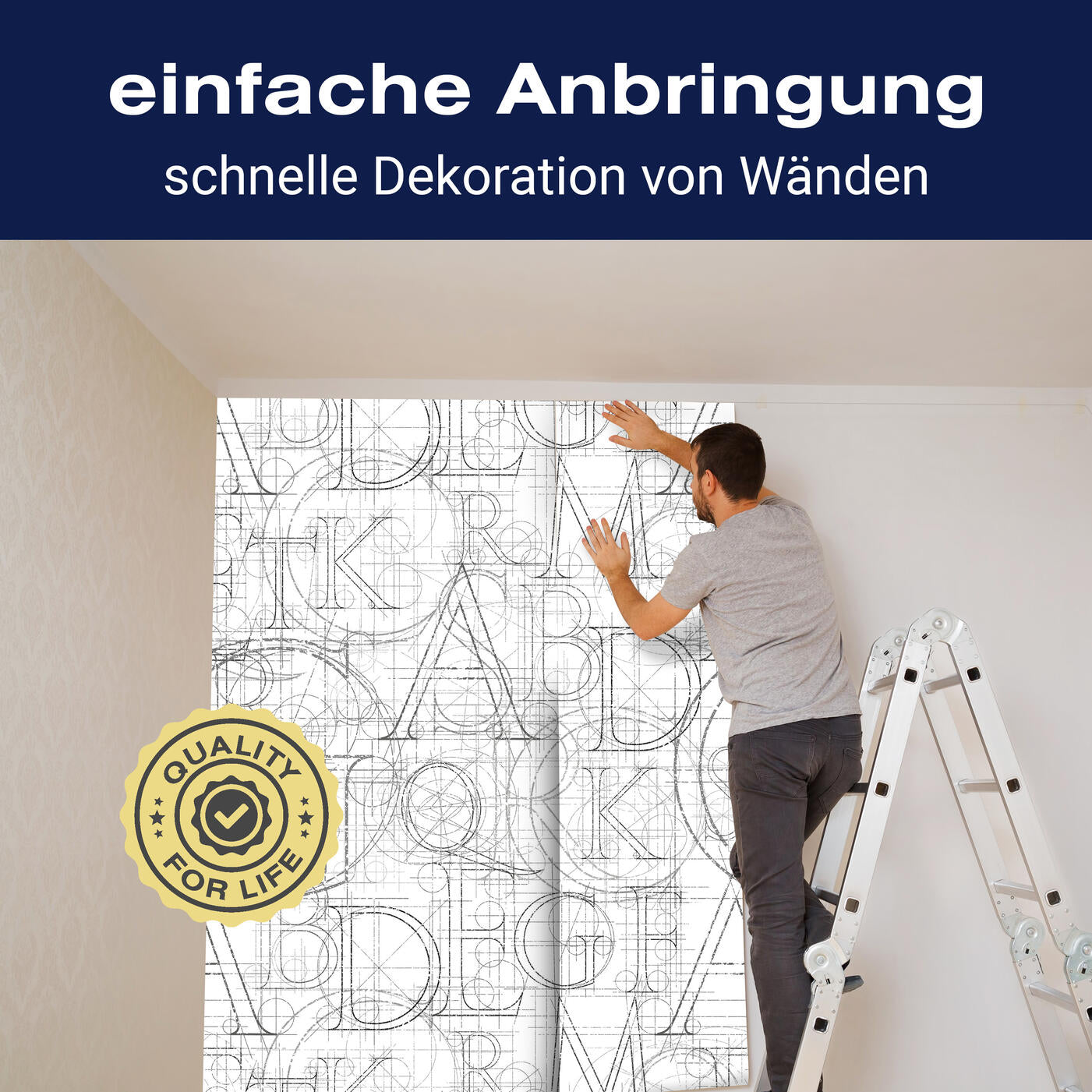 Träumst Du davon, Deine Wände in eine beeindruckende Kunstgalerie zu verwandeln? Mit unserer hochwertigen Fototapete Alphabet schwarz weiß M6363 ist es jetzt möglich! Jede Wand wird zu einer Leinwand Deiner Kreativität.