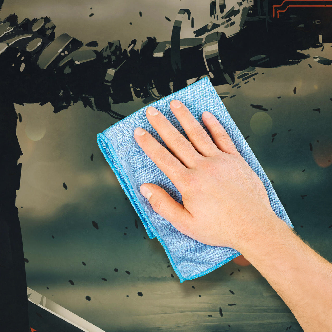 - Reinige eventuelle Verschmutzungen oder Kleberreste sofort mit einem feuchten Schwamm oder Tuch.