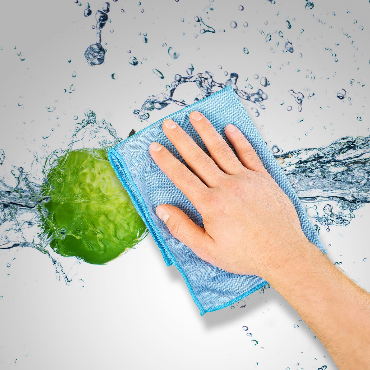 - Reinige eventuelle Verschmutzungen oder Kleberreste sofort mit einem feuchten Schwamm oder Tuch.