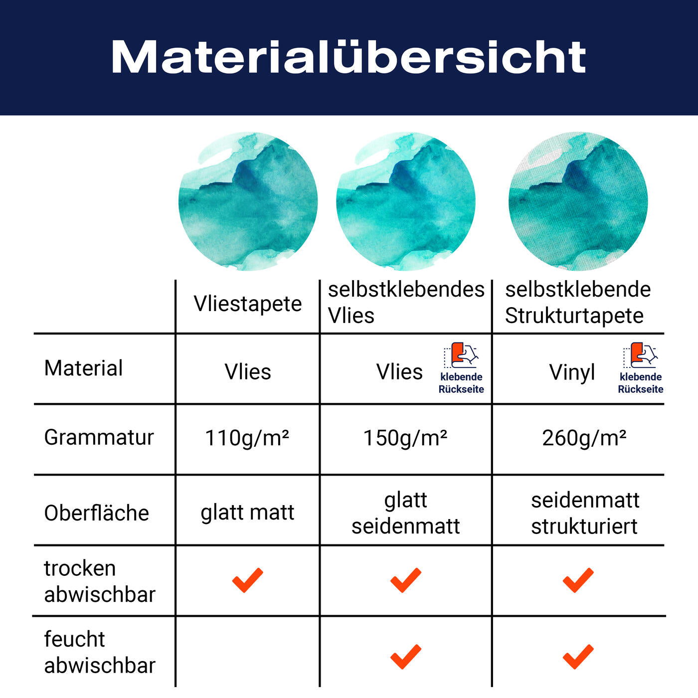 - Selbstklebendes Vlies 150g/m²: Einfach anzubringen, perfekt für Mietwohnungen.