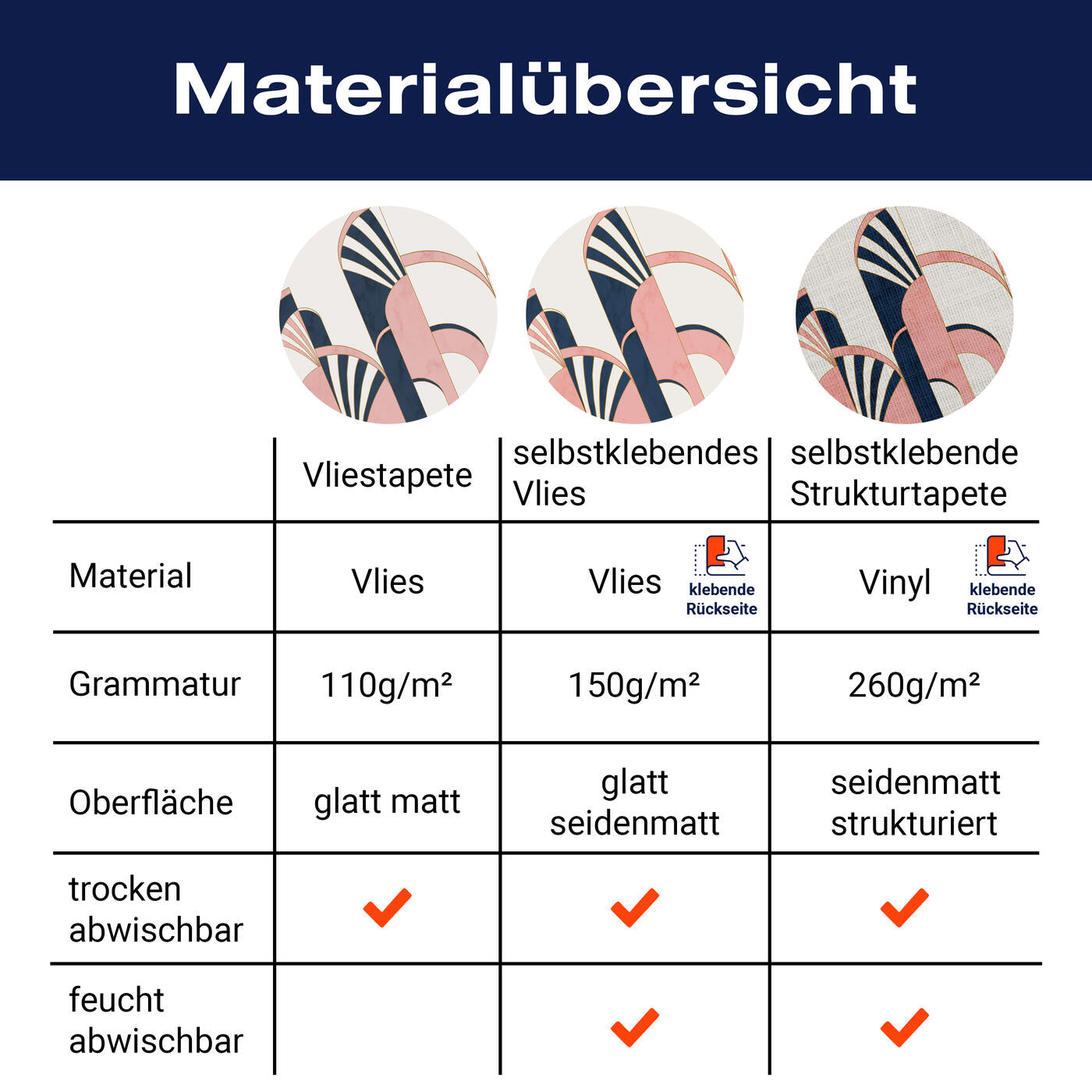 - Selbstklebendes Vlies 150g/m²: Einfach anzubringen, perfekt für Mietwohnungen.