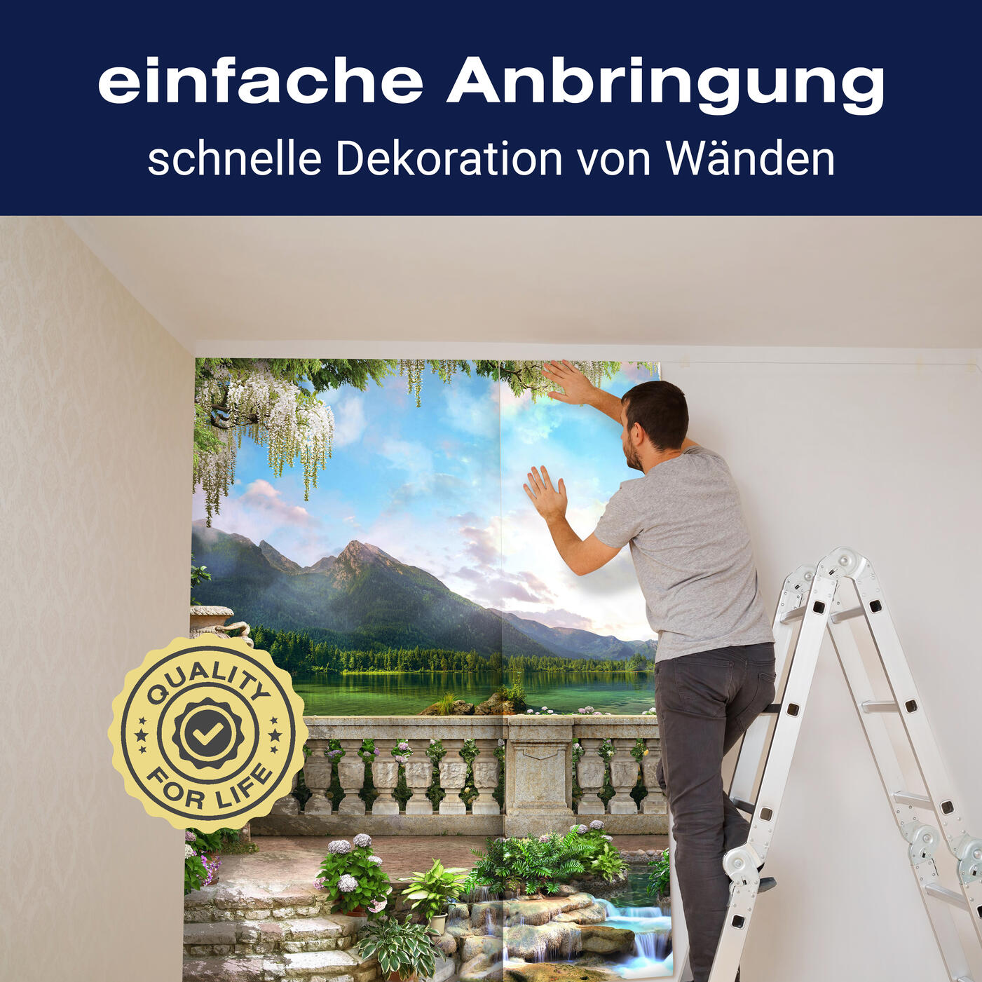 Träumst Du davon, Deine Wände in eine beeindruckende Kunstgalerie zu verwandeln? Mit unserer hochwertigen Fototapete Ausblick Berge Pfau Treppe Wasserfall M6847 ist es jetzt möglich! Jede Wand wird zu einer Leinwand Deiner Kreativität.