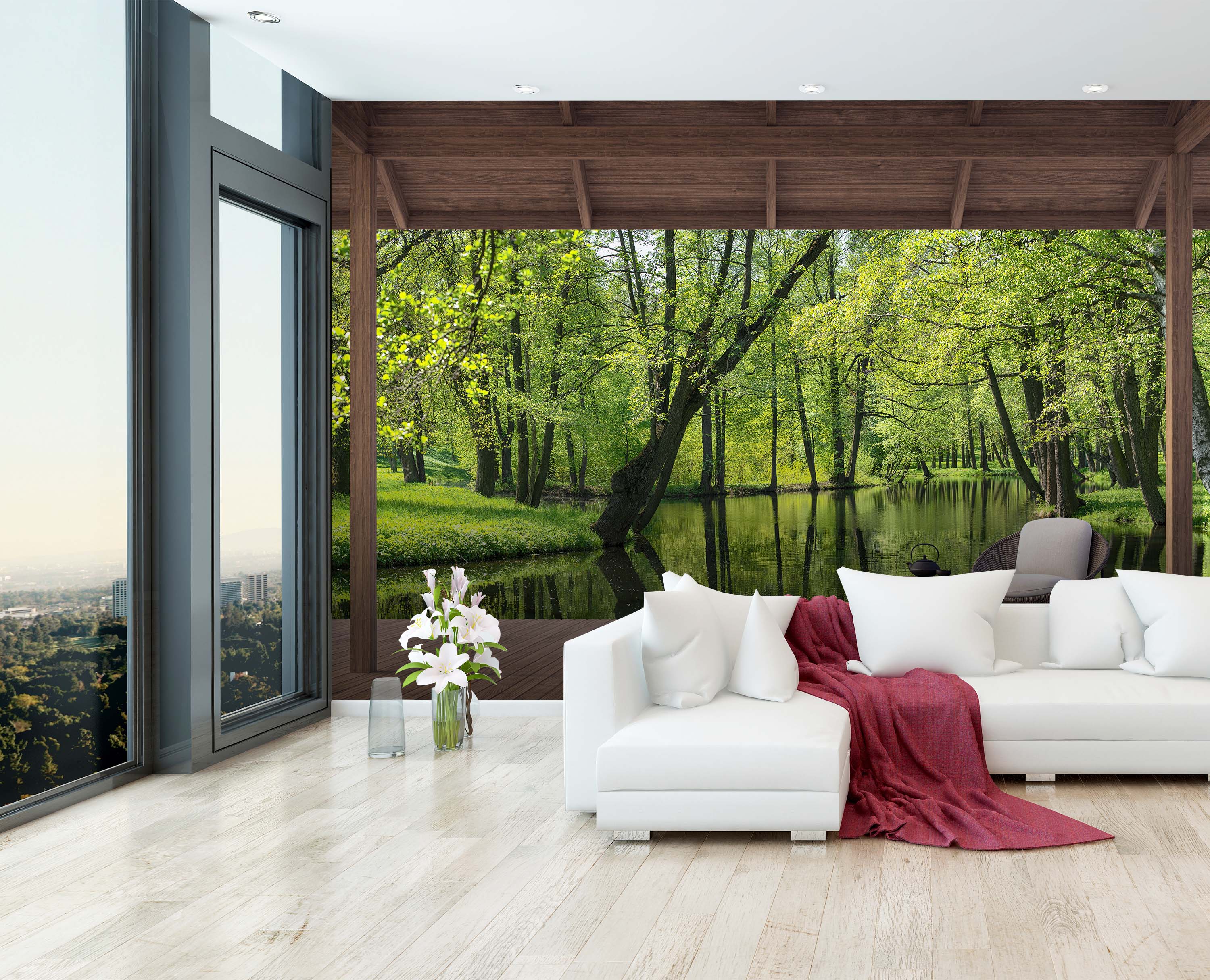 Träumst Du davon, Deine Wände in eine beeindruckende Kunstgalerie zu verwandeln? Mit unserer hochwertigen Fototapete Ausblick Terrasse Wald Fluss M6844 ist es jetzt möglich! Jede Wand wird zu einer Leinwand Deiner Kreativität.