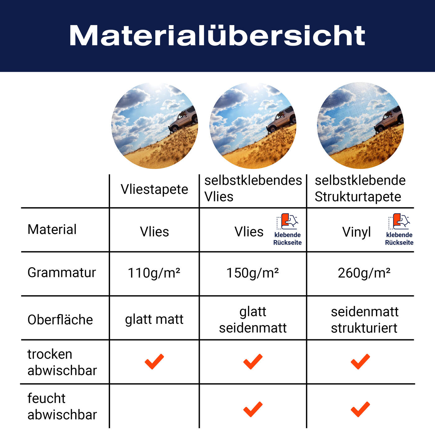 - Selbstklebendes Vlies 150g/m²: Einfach anzubringen, perfekt für Mietwohnungen.