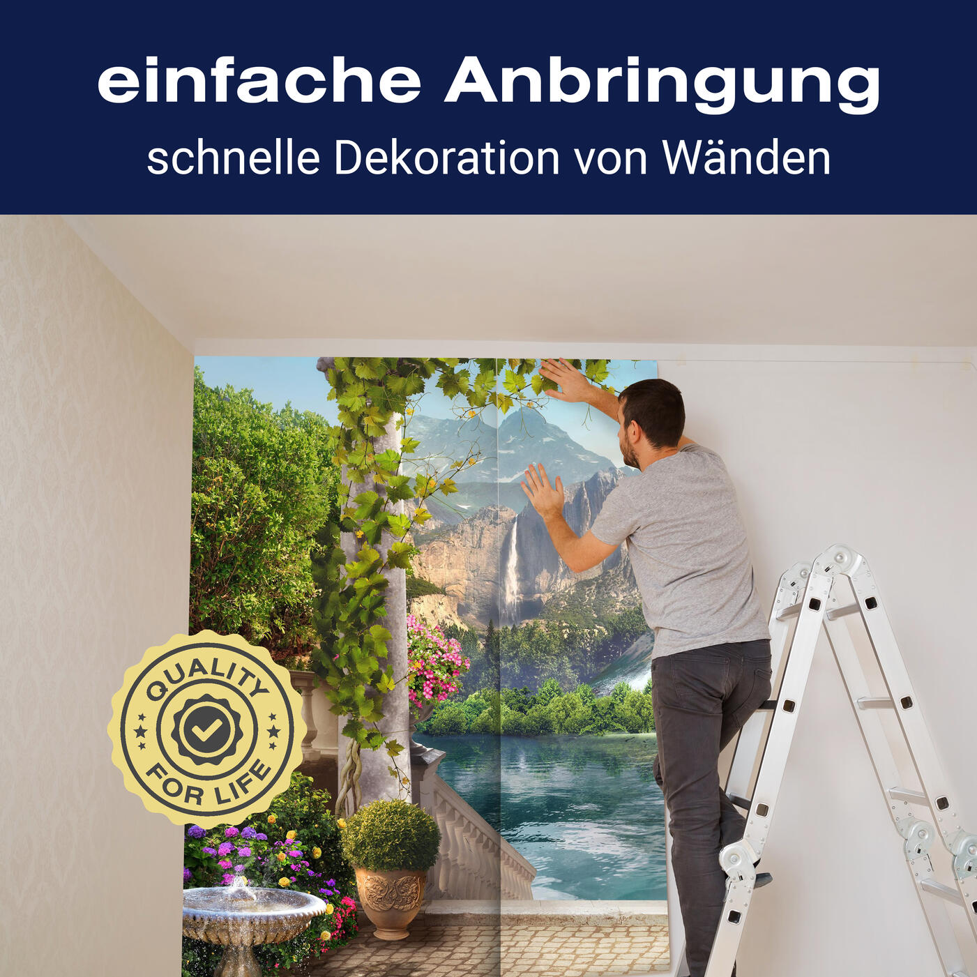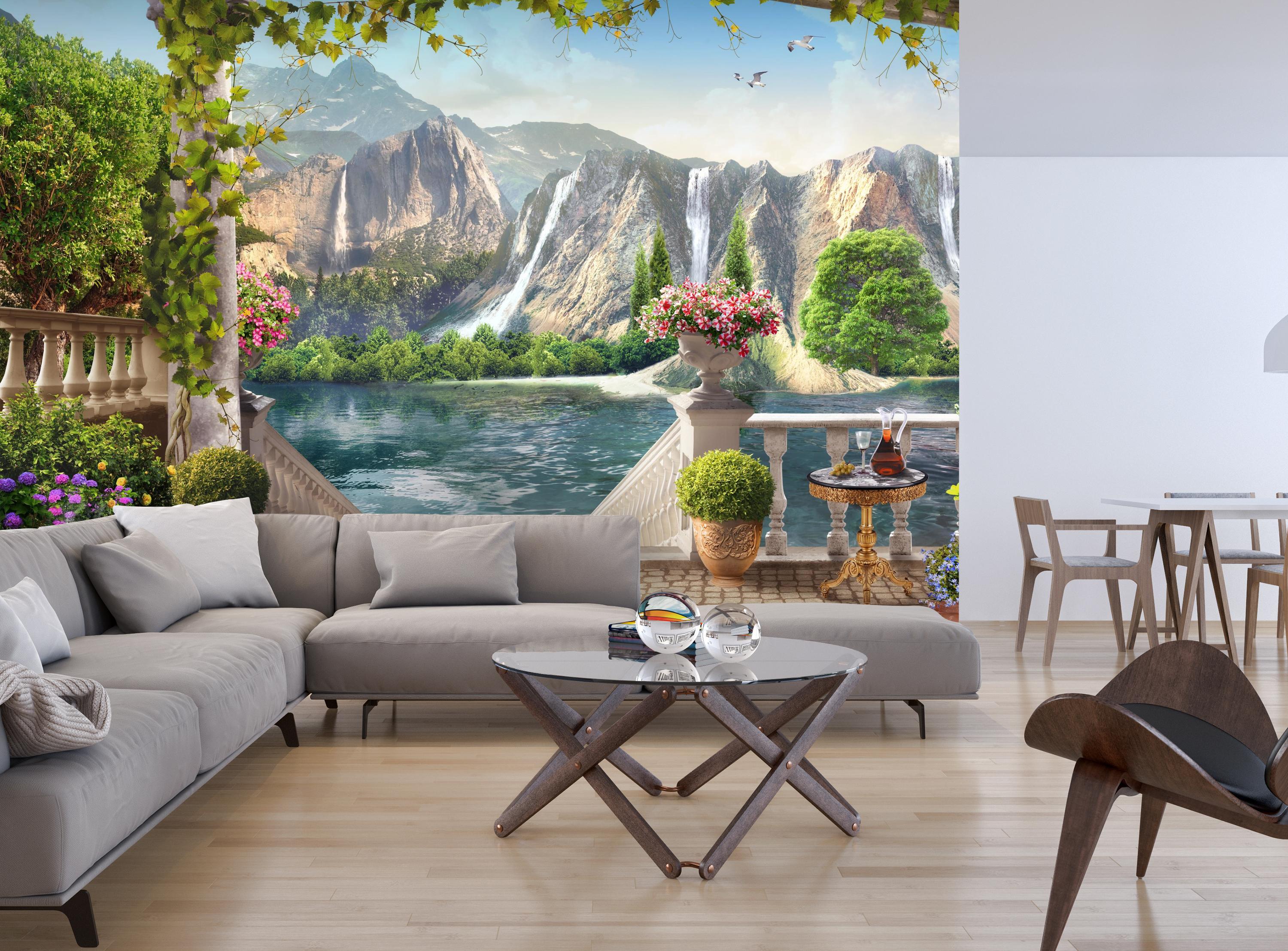 Träumst Du davon, Deine Wände in eine beeindruckende Kunstgalerie zu verwandeln? Mit unserer hochwertigen Fototapete Balkon Seeblick Wasserfall M1100 ist es jetzt möglich! Jede Wand wird zu einer Leinwand Deiner Kreativität.