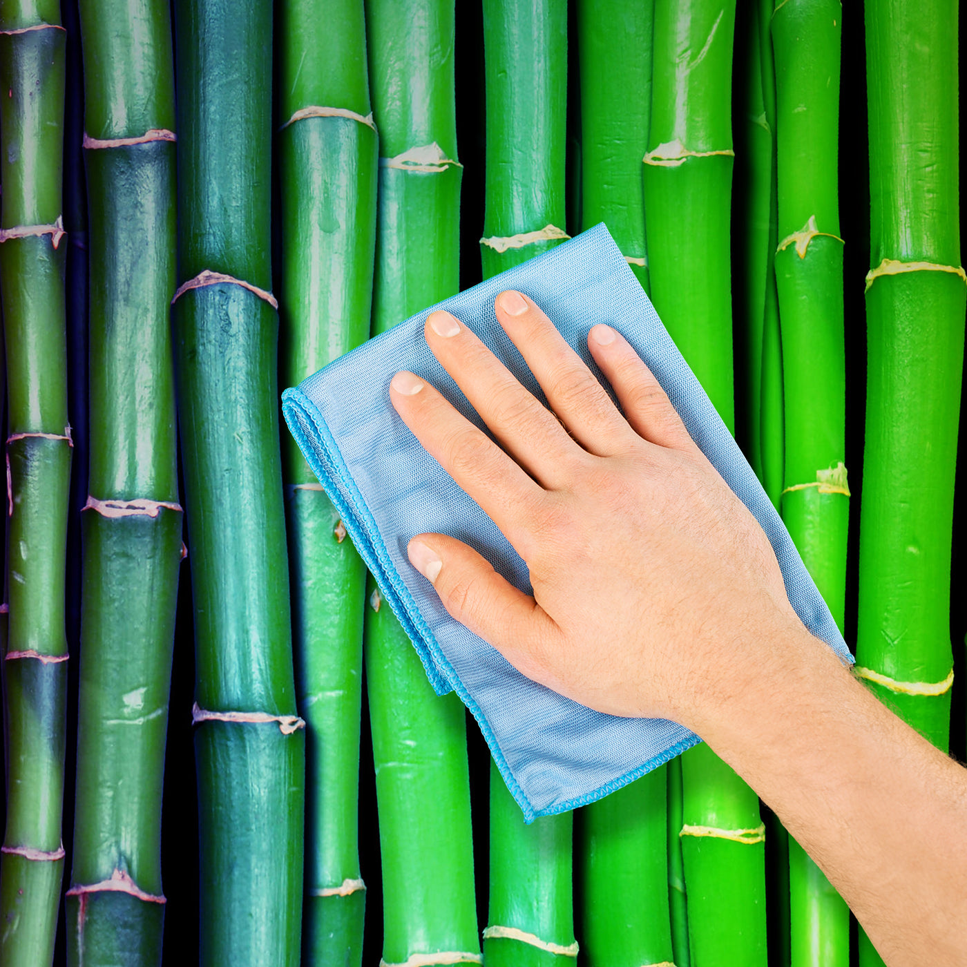 - Reinige eventuelle Verschmutzungen oder Kleberreste sofort mit einem feuchten Schwamm oder Tuch.