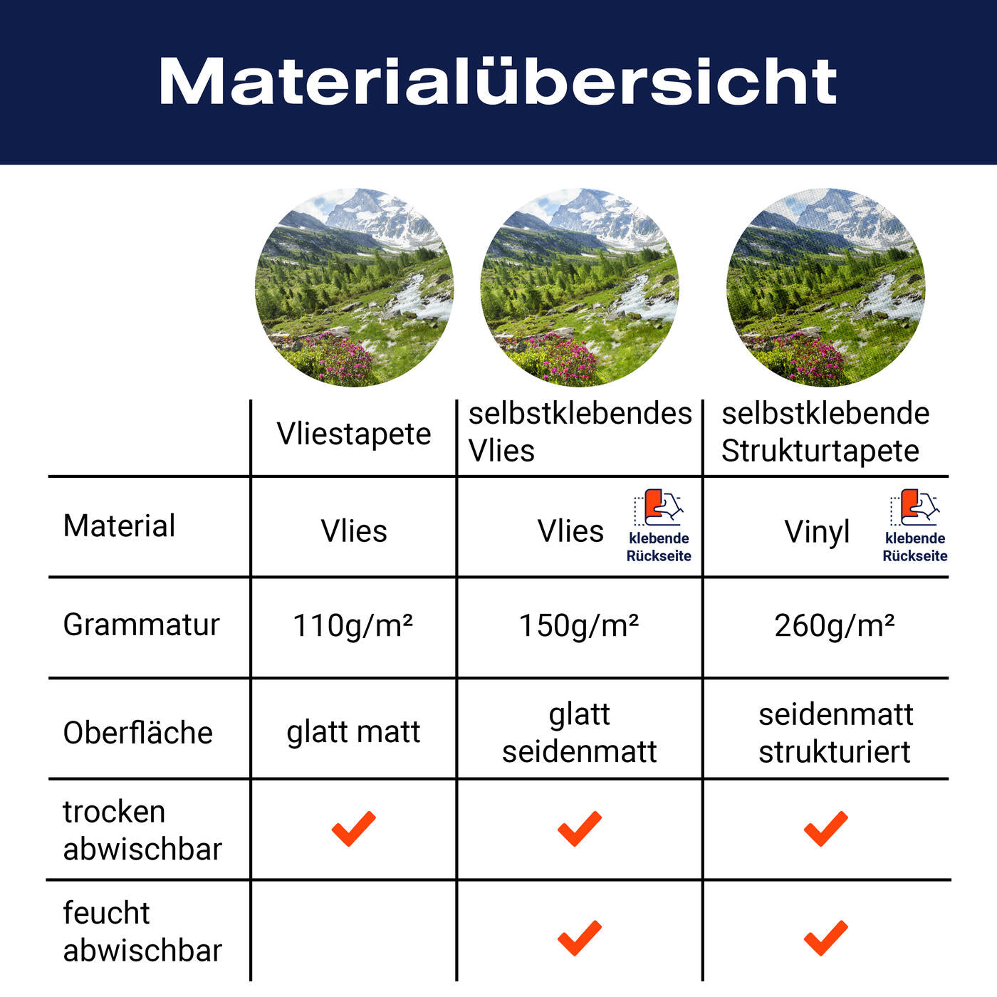 - Selbstklebendes Vlies 150g/m²: Einfach anzubringen, perfekt für Mietwohnungen.