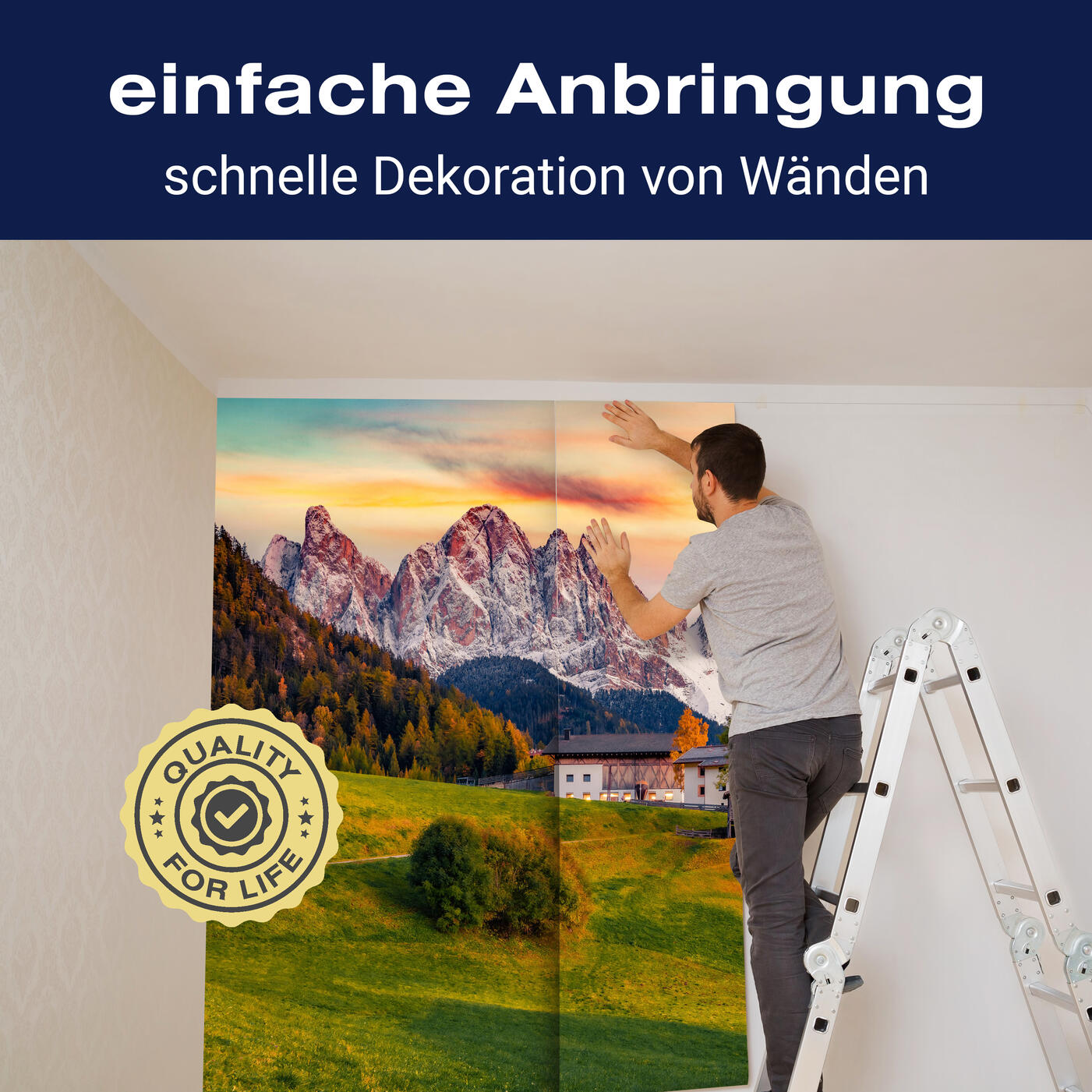 Unsere Fototapeten sind so konzipiert, dass sie ohne großen Aufwand angebracht werden können. Ob selbstklebend oder traditionell, die Anbringung ist einfach und schnell.