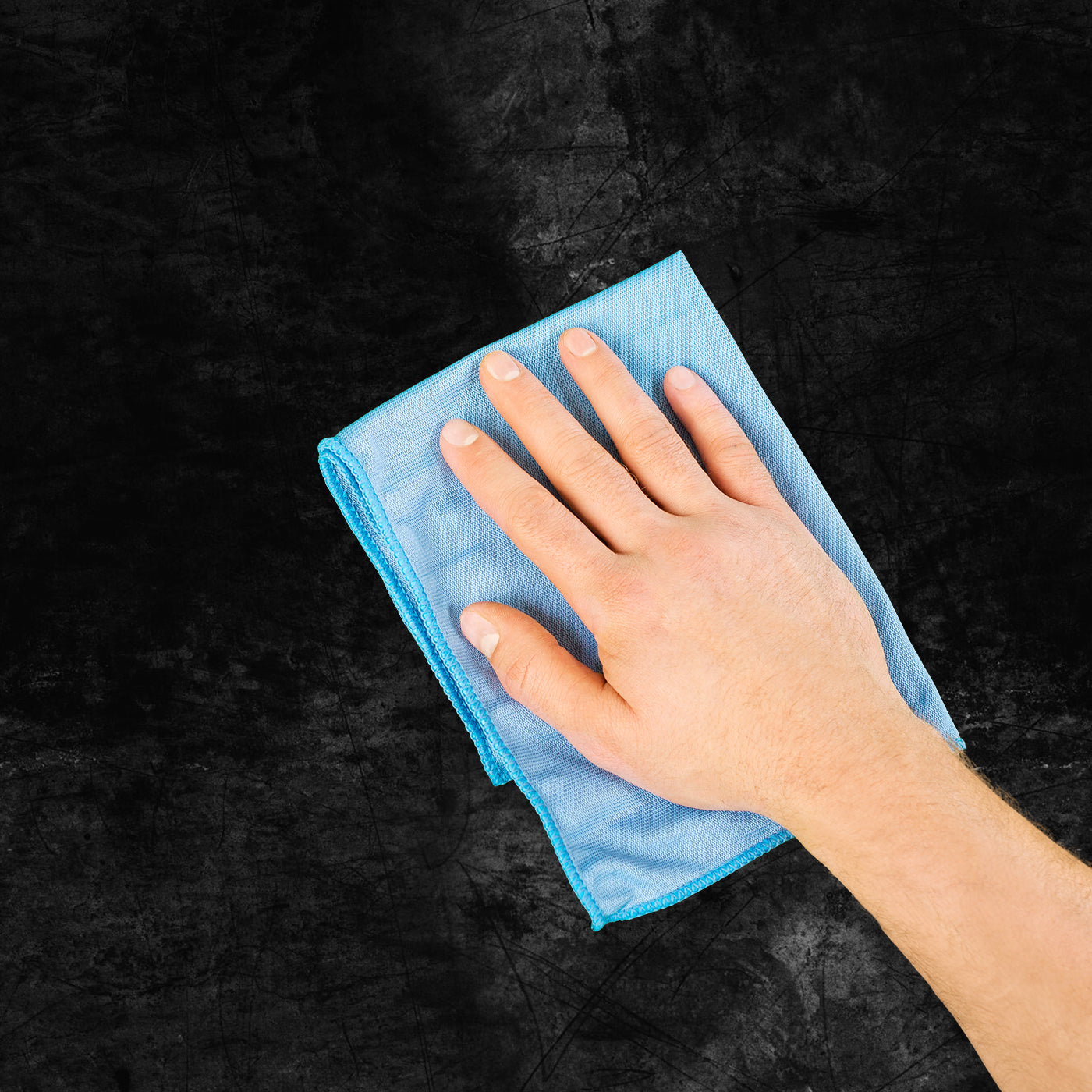 - Reinige eventuelle Verschmutzungen oder Kleberreste sofort mit einem feuchten Schwamm oder Tuch.