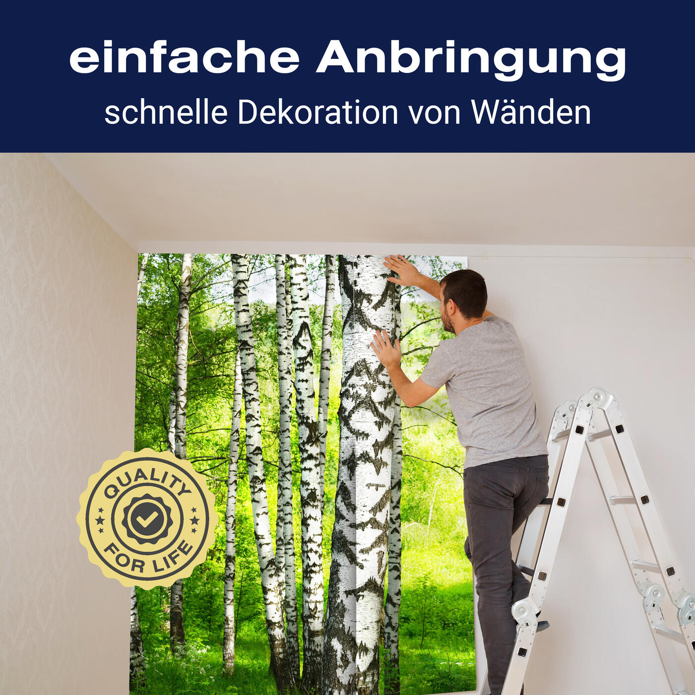 Träumst Du davon, Deine Wände in eine beeindruckende Kunstgalerie zu verwandeln? Mit unserer hochwertigen Fototapete Birkenwald Wiese Landschaft M5834 ist es jetzt möglich! Jede Wand wird zu einer Leinwand Deiner Kreativität.