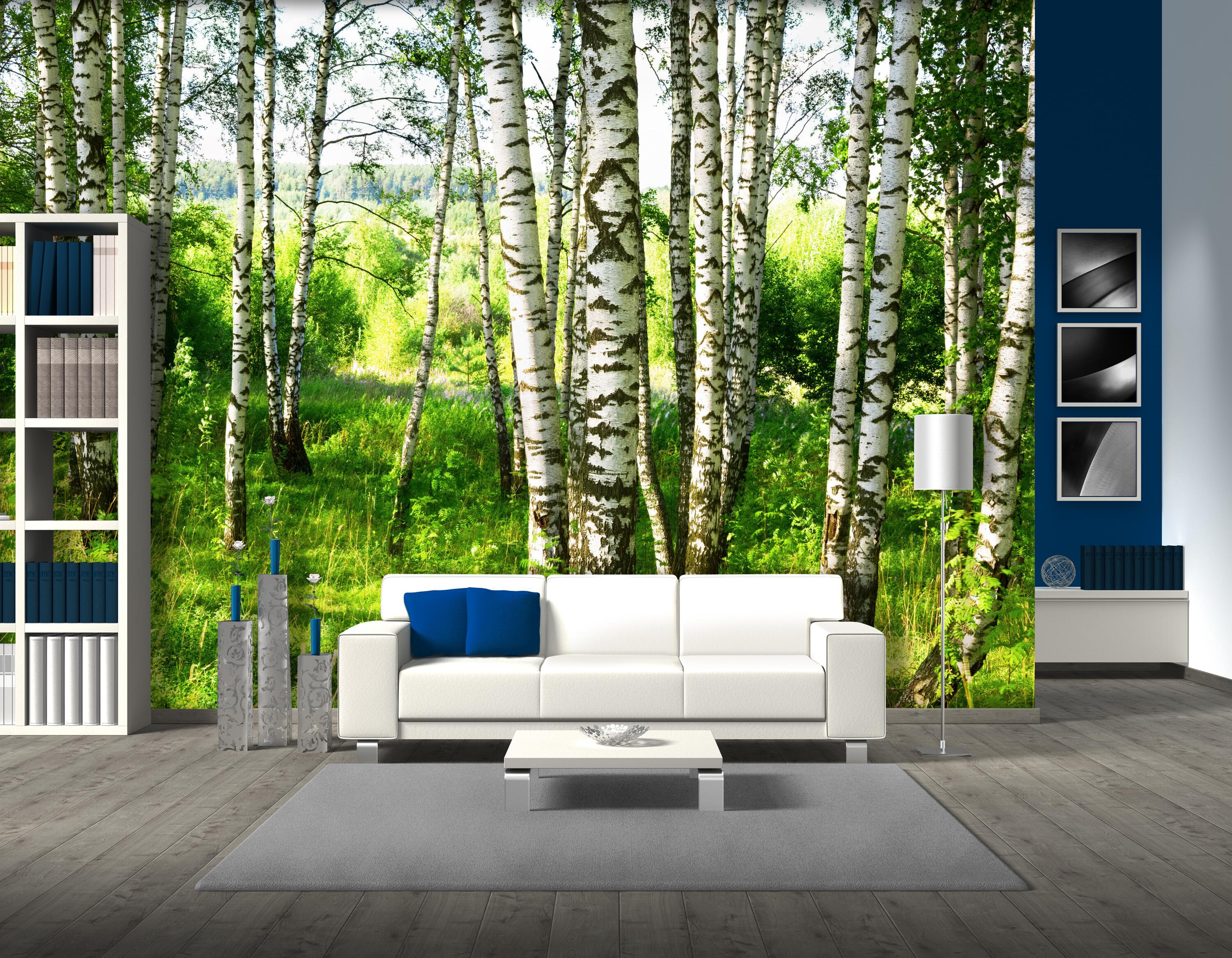 FOTOTAPETE Birkenwald Wiese Landschaft Sträuchern