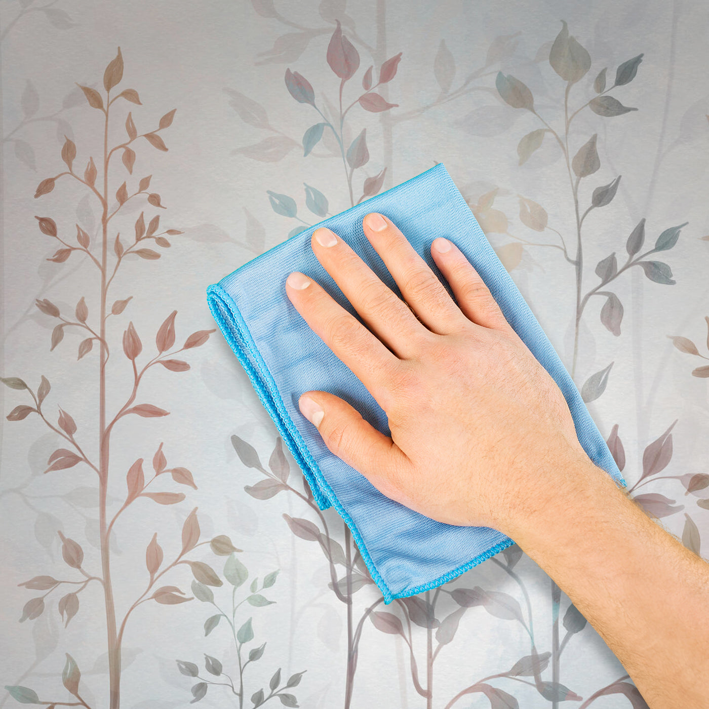 - Reinige eventuelle Verschmutzungen oder Kleberreste sofort mit einem feuchten Schwamm oder Tuch.