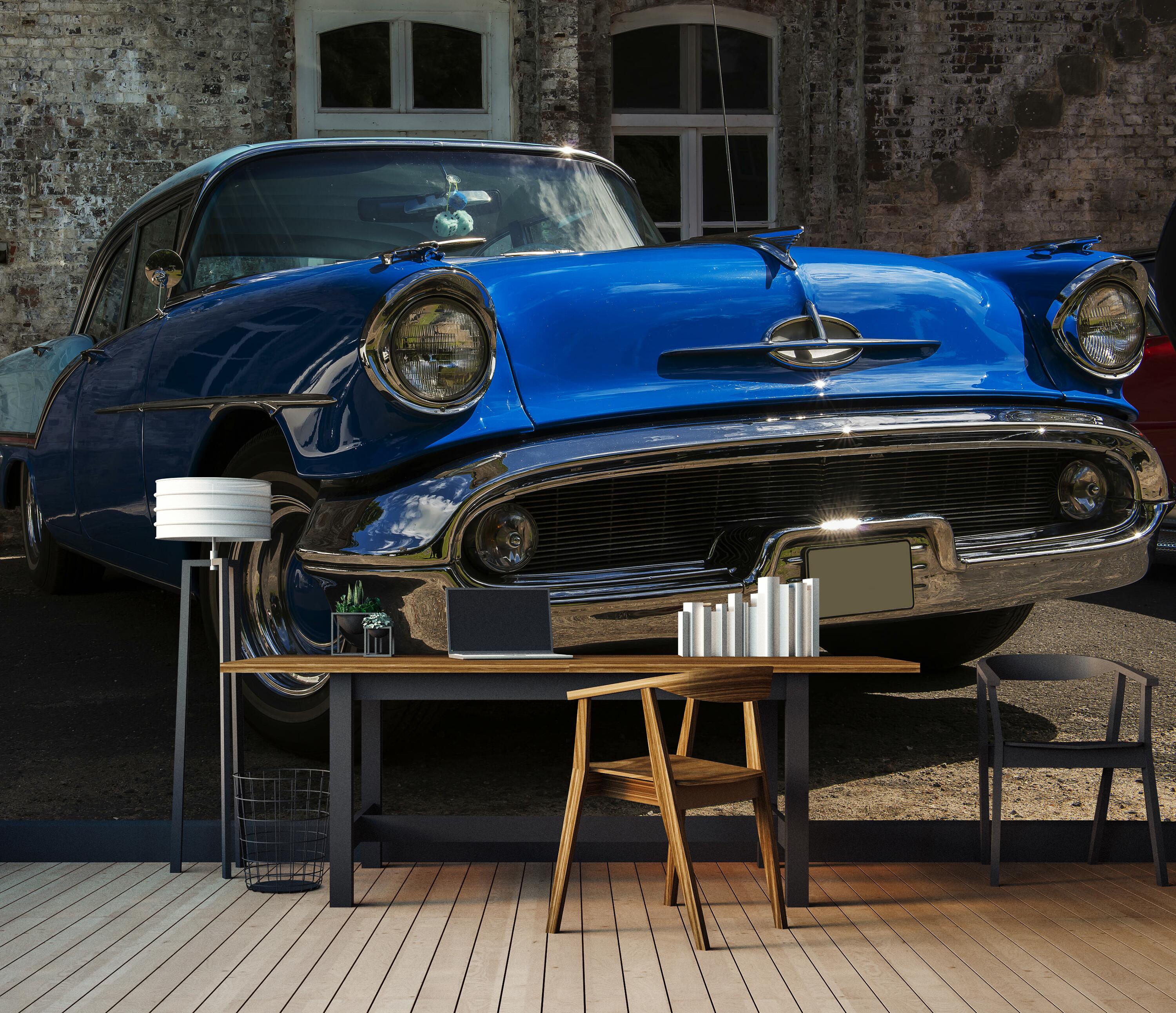 Fototapete blauer Oldtimer Auto M6733