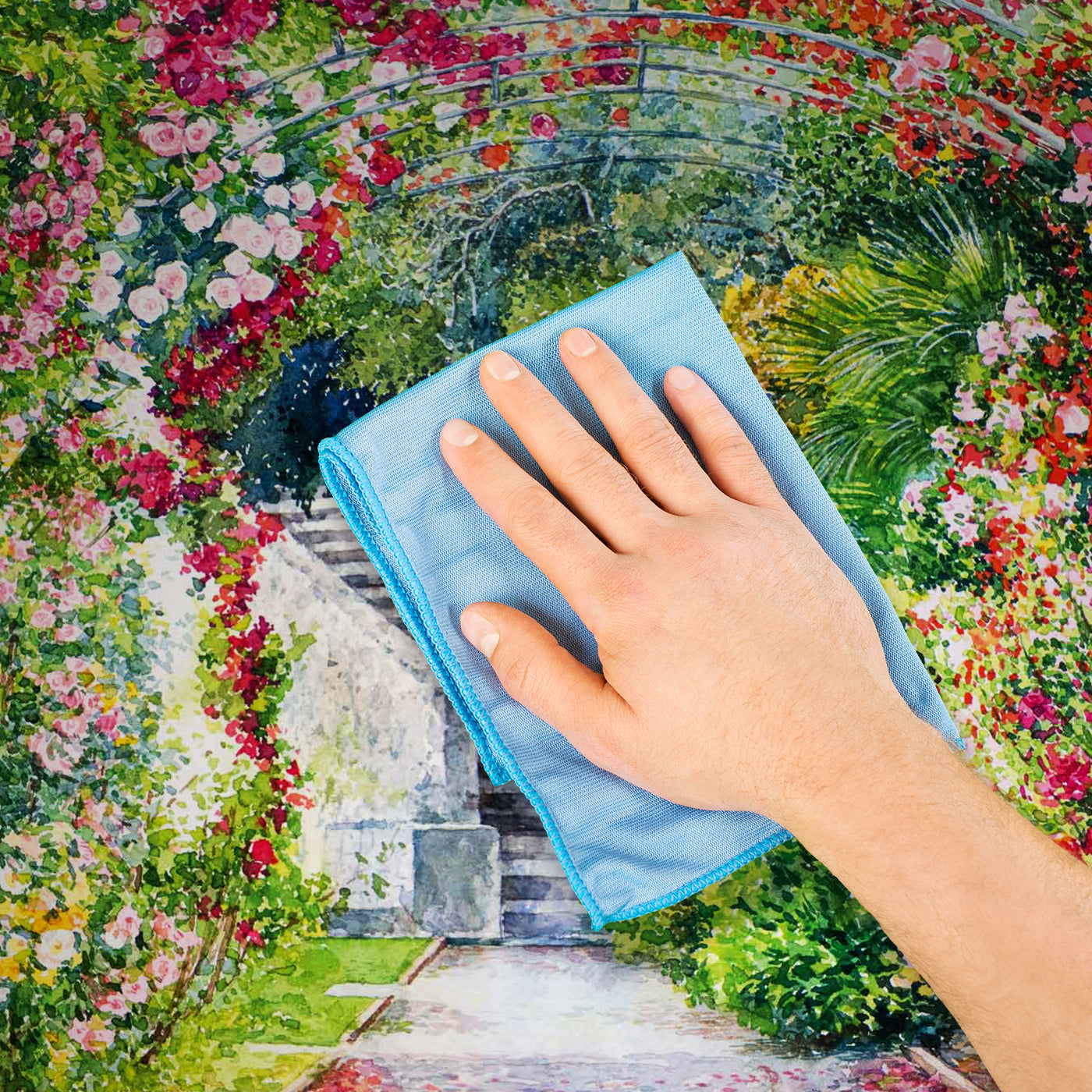 - Reinige eventuelle Verschmutzungen oder Kleberreste sofort mit einem feuchten Schwamm oder Tuch.