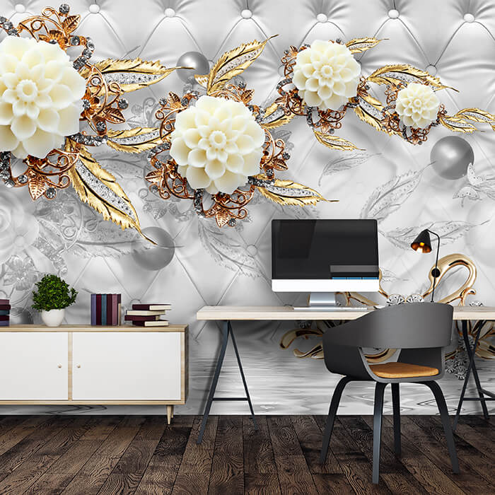 Fototapete Blumen Gold Diamanten Luxuriös Grau M1973