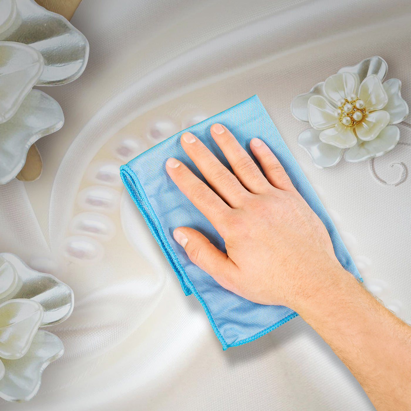 - Reinige eventuelle Verschmutzungen oder Kleberreste sofort mit einem feuchten Schwamm oder Tuch.