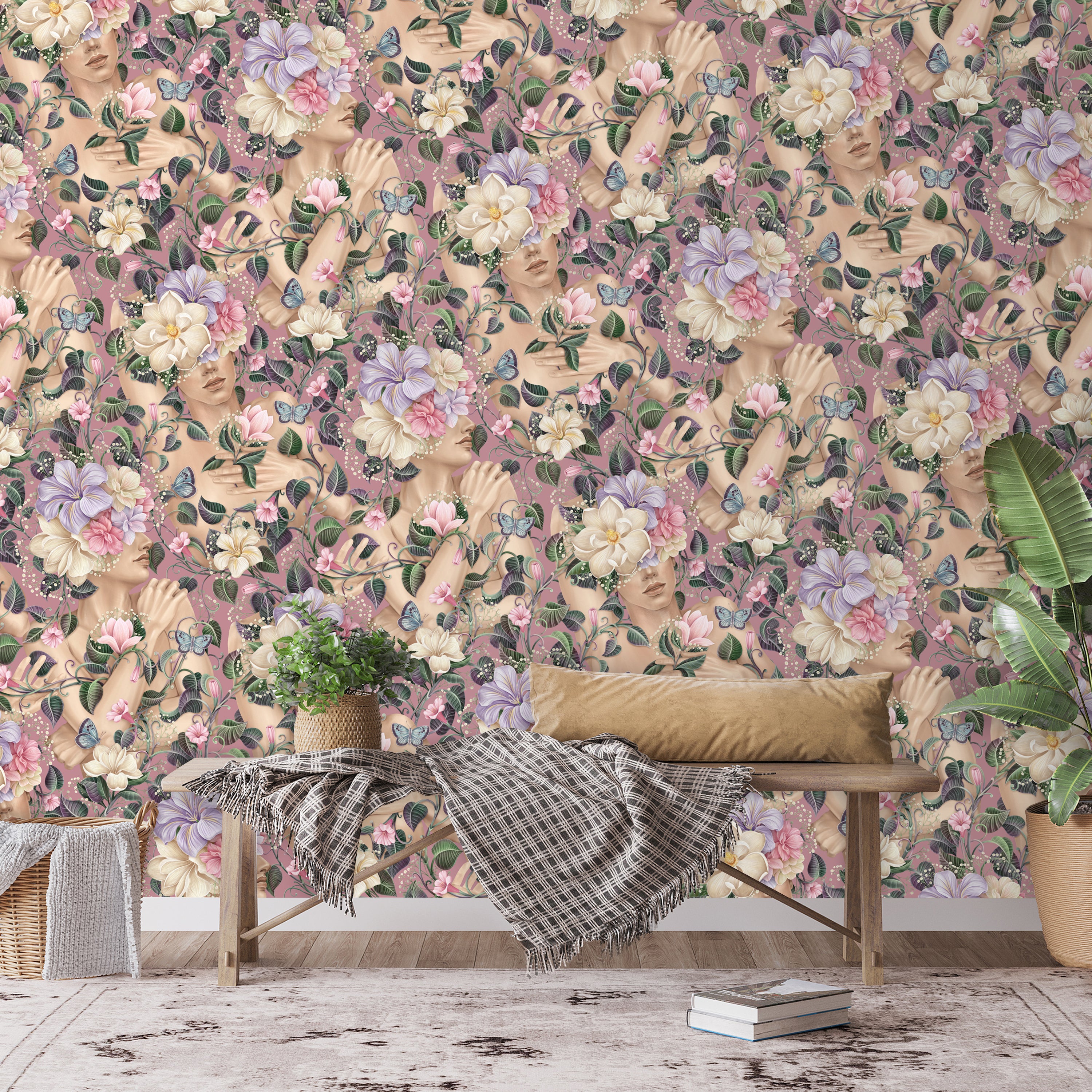 FOTOTAPETE Blumen Muster Frau