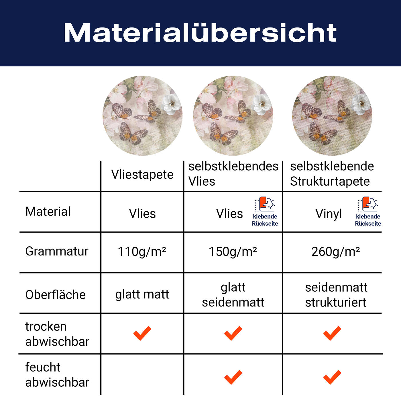 FOTOTAPETE Blumen Schmetterlinge Retro